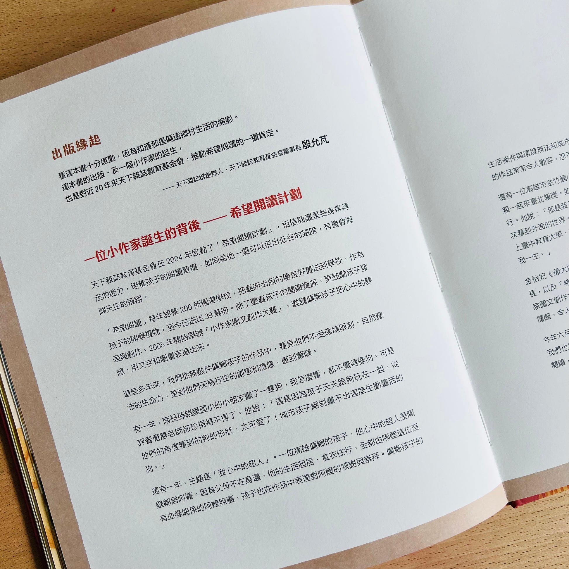 這本書的出版、及一個小作家的誕生,也是對近20年來天下雜誌教育基金會,推動希望閱讀的一種肯定。──殷允芃(天下雜誌創辦人、天下雜誌教育基金會董事長)