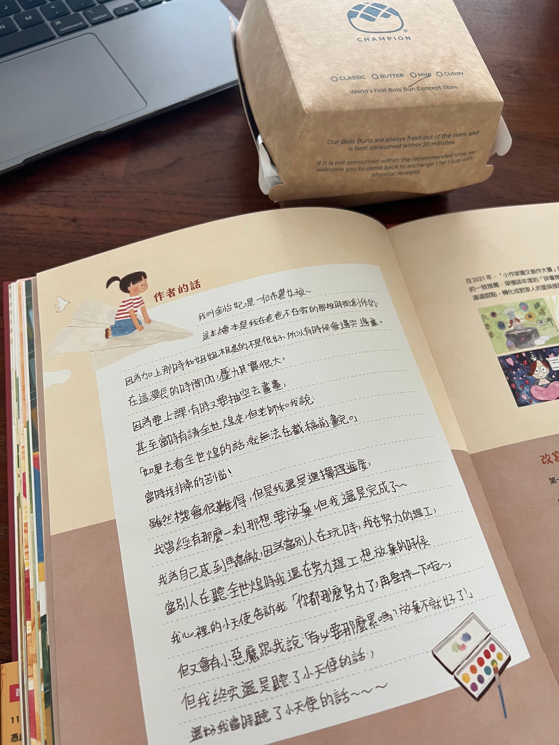 2021年天下雜誌教育基金會評選的小作家圖文創作大賽中,《小小烘焙師》書中堅強的小Makav擄獲了評審的心。她以各種麵包巧妙比喻成家人的相互關懷與愛,既真實深刻又充滿想像力,傳達了──有愛的孩子最幸福── 這個看似簡單又深澳的道理。