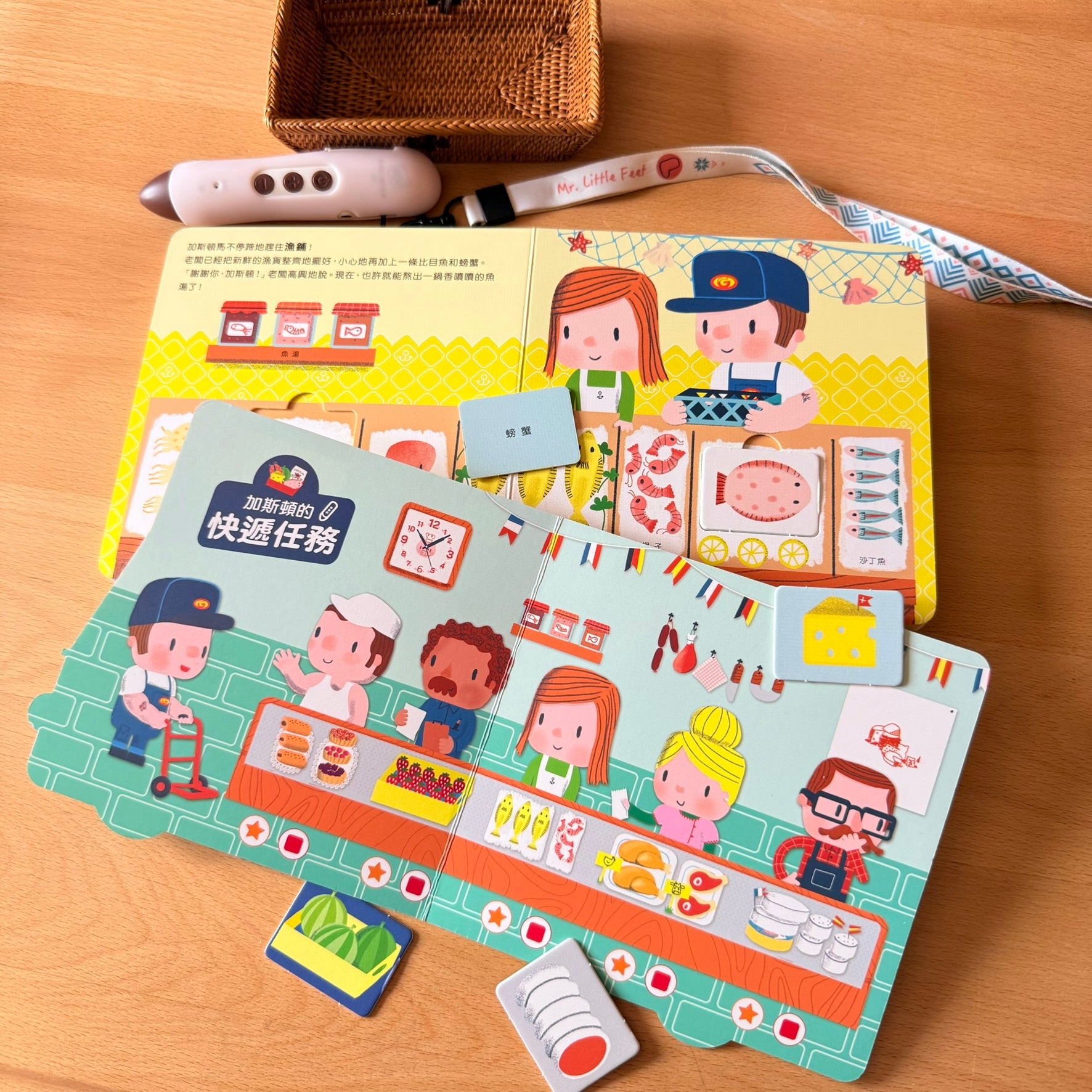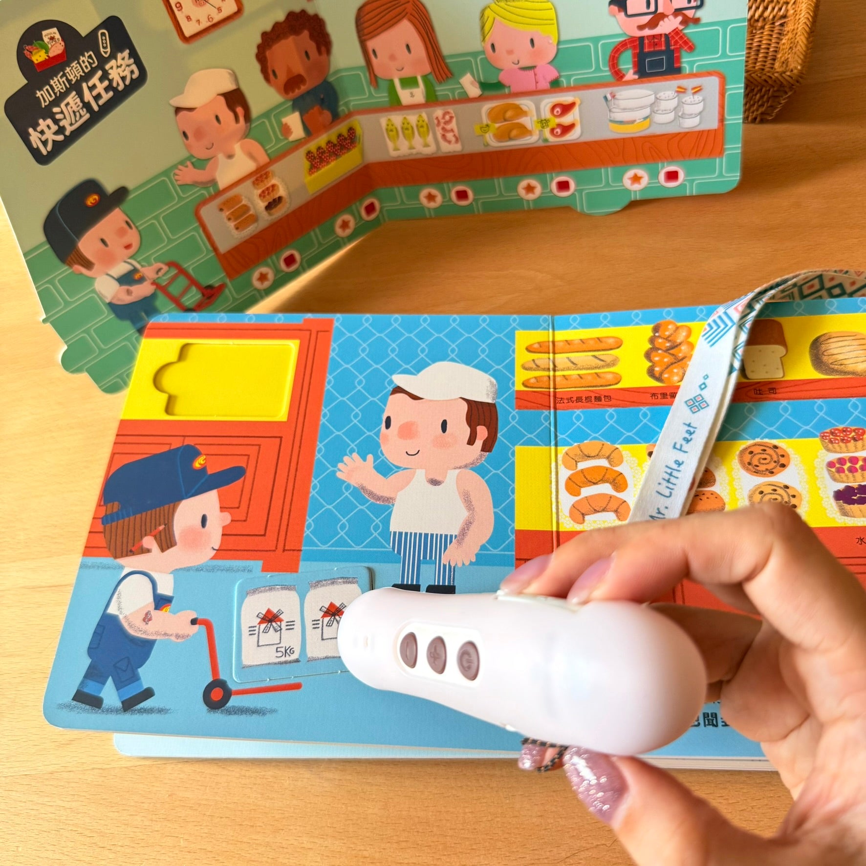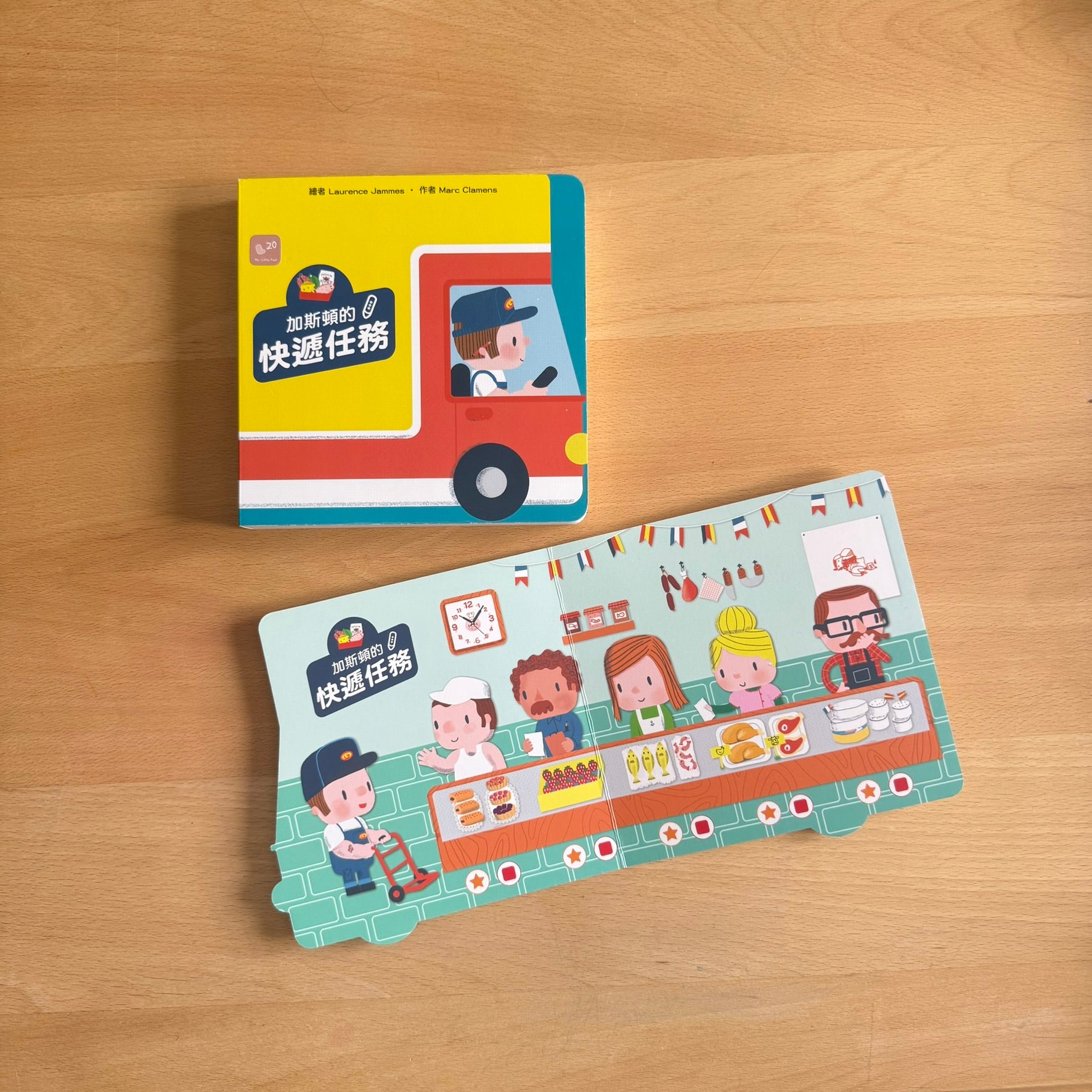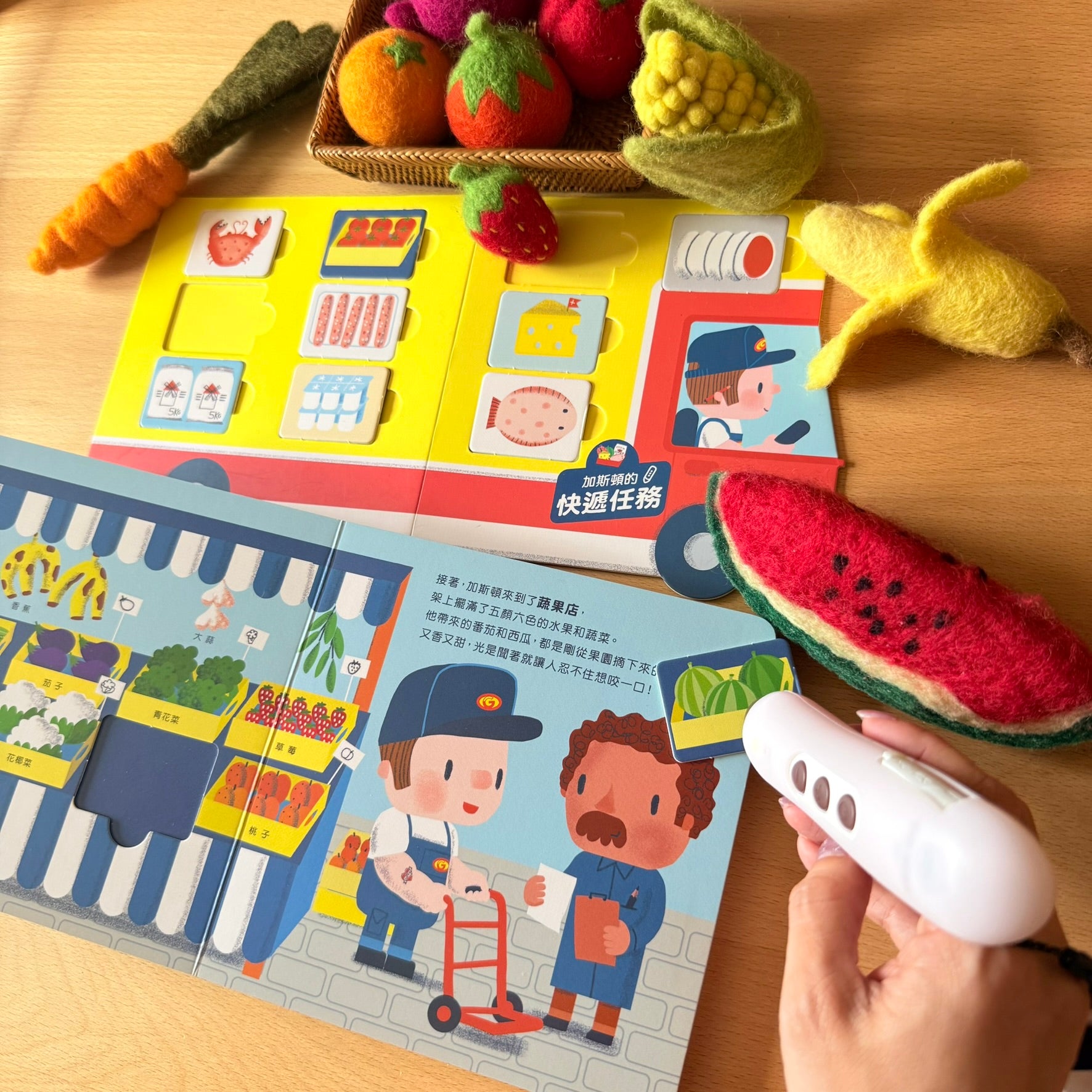 《加斯頓的快遞任務》是一套結合 食材認知、任務挑戰與職業體驗 的互動式遊戲書。