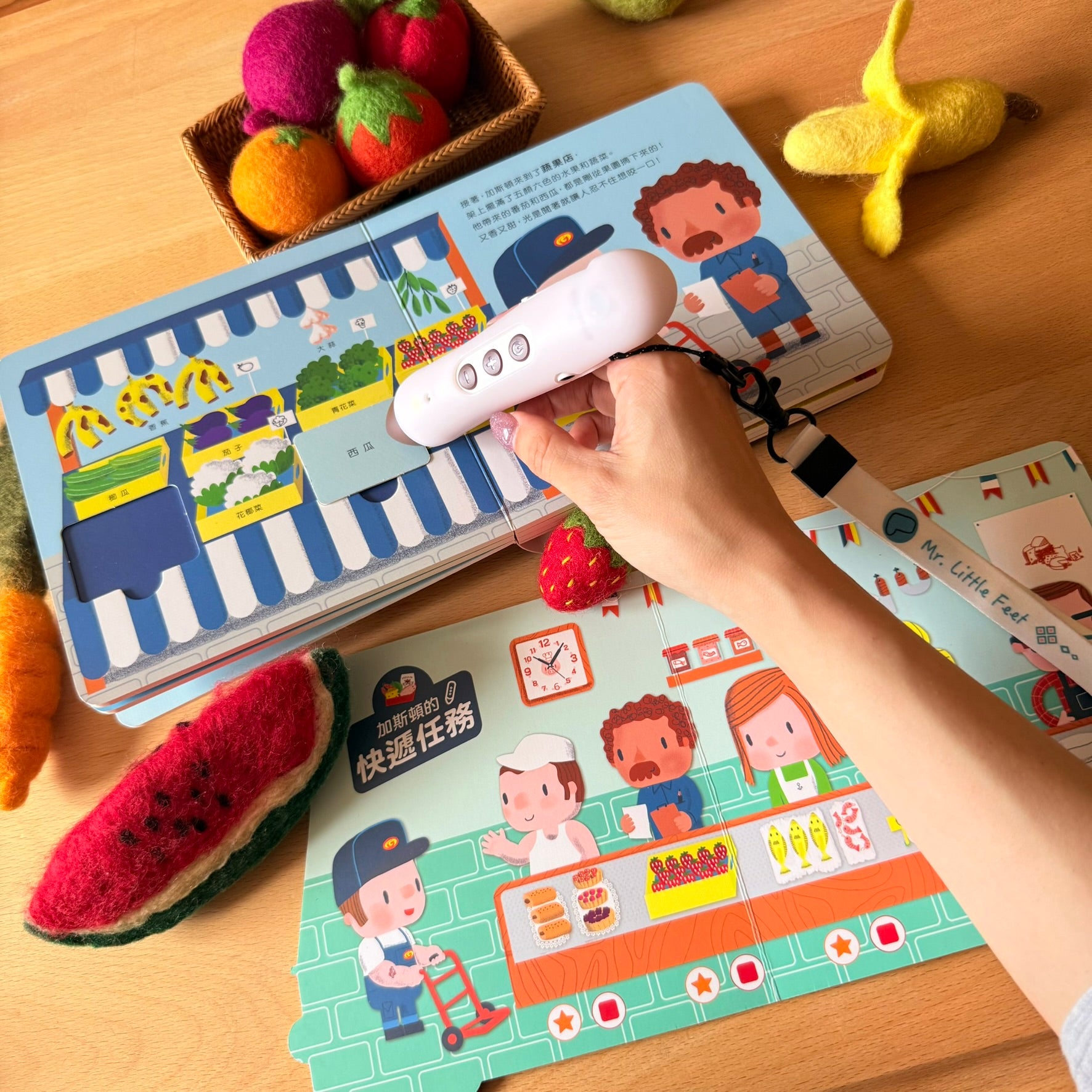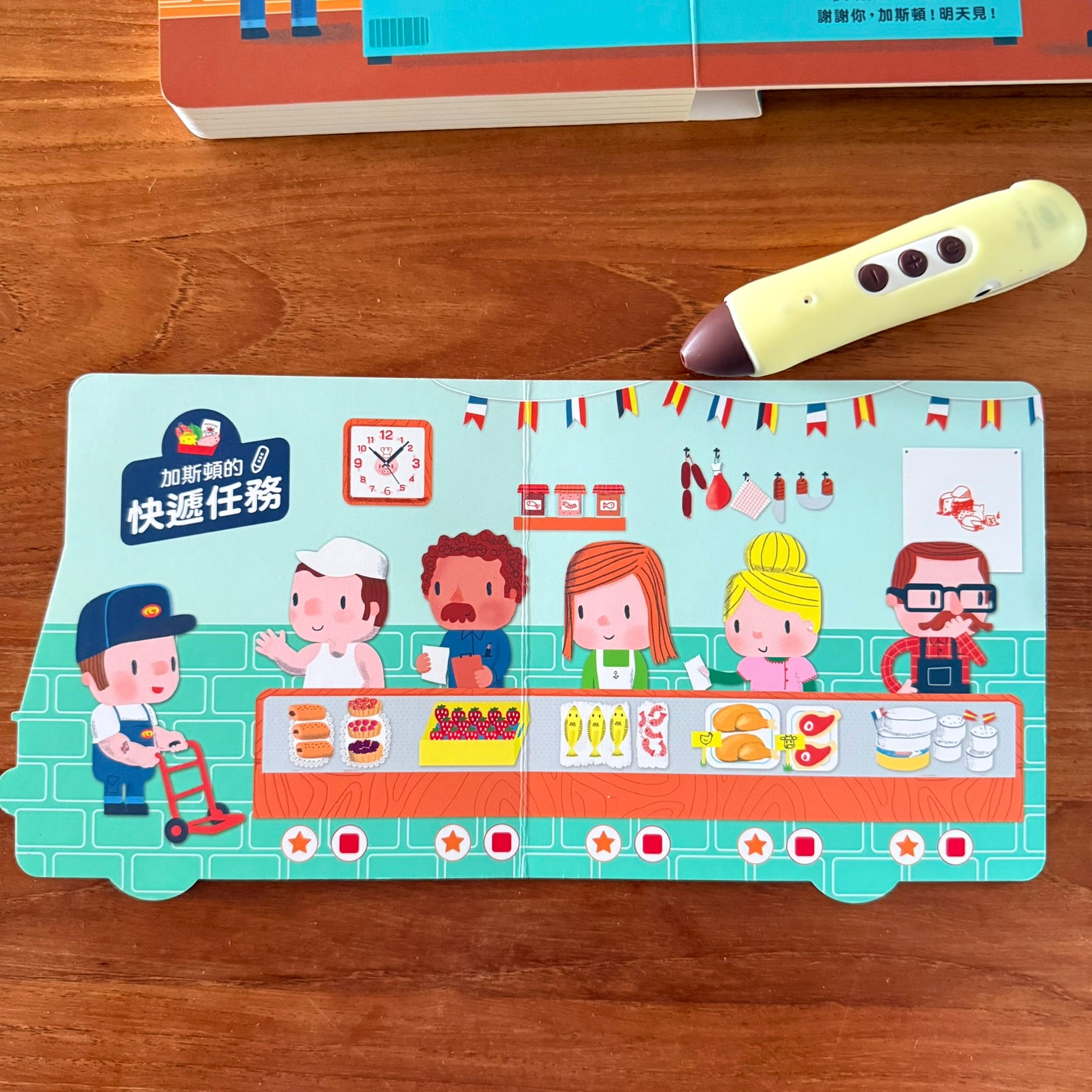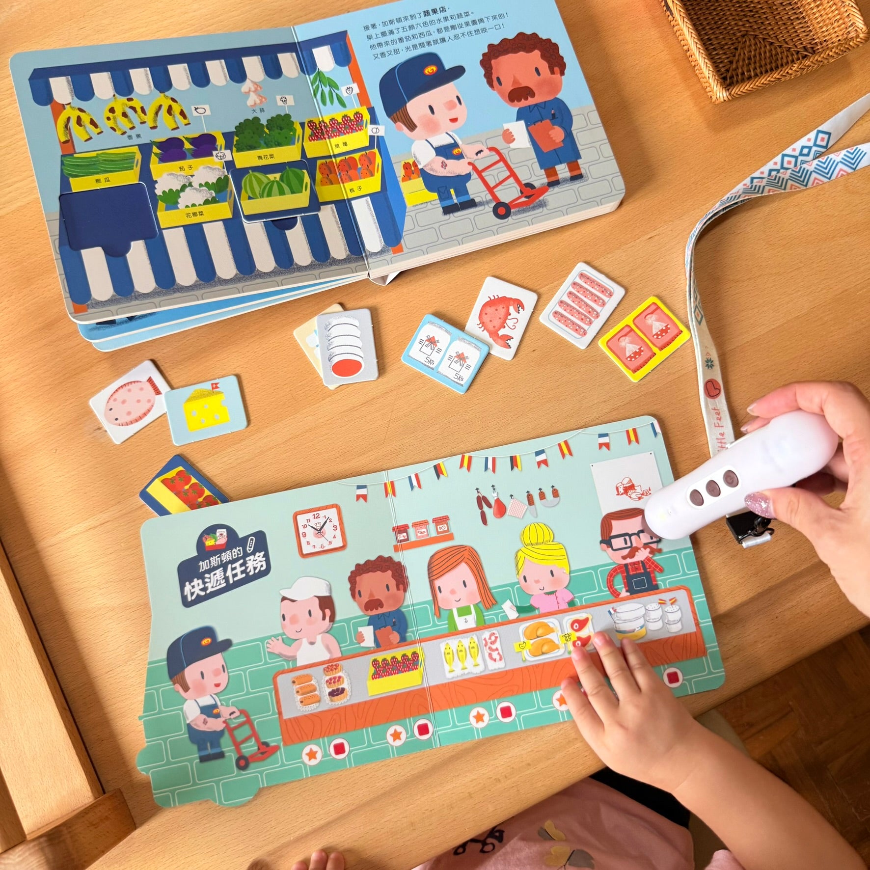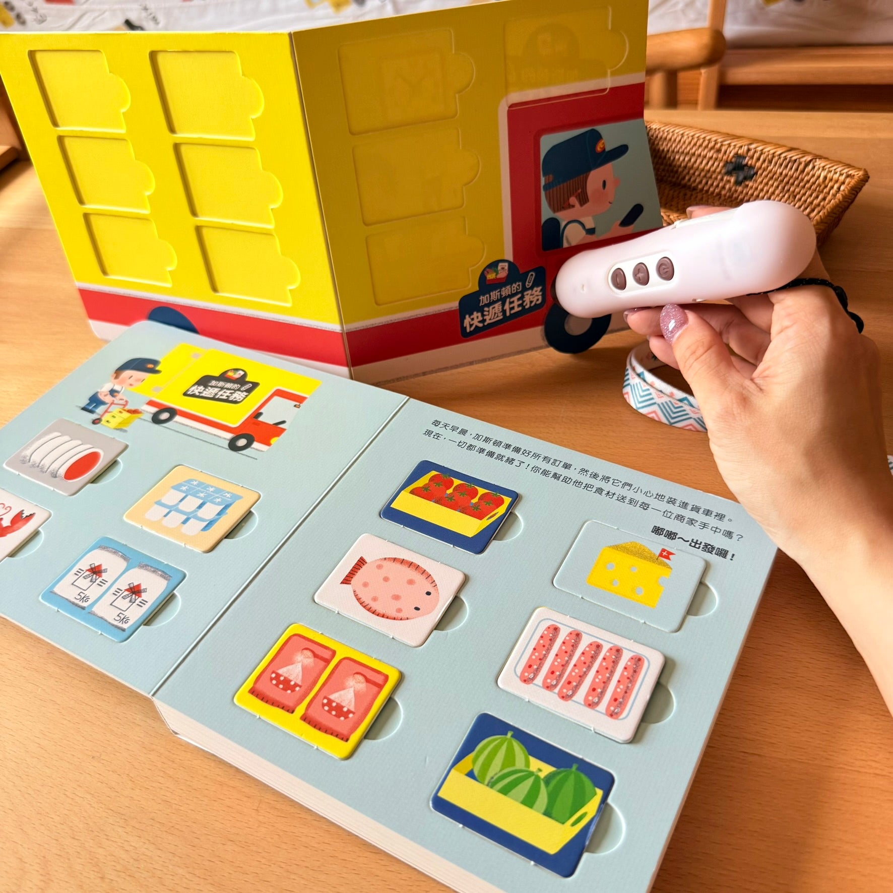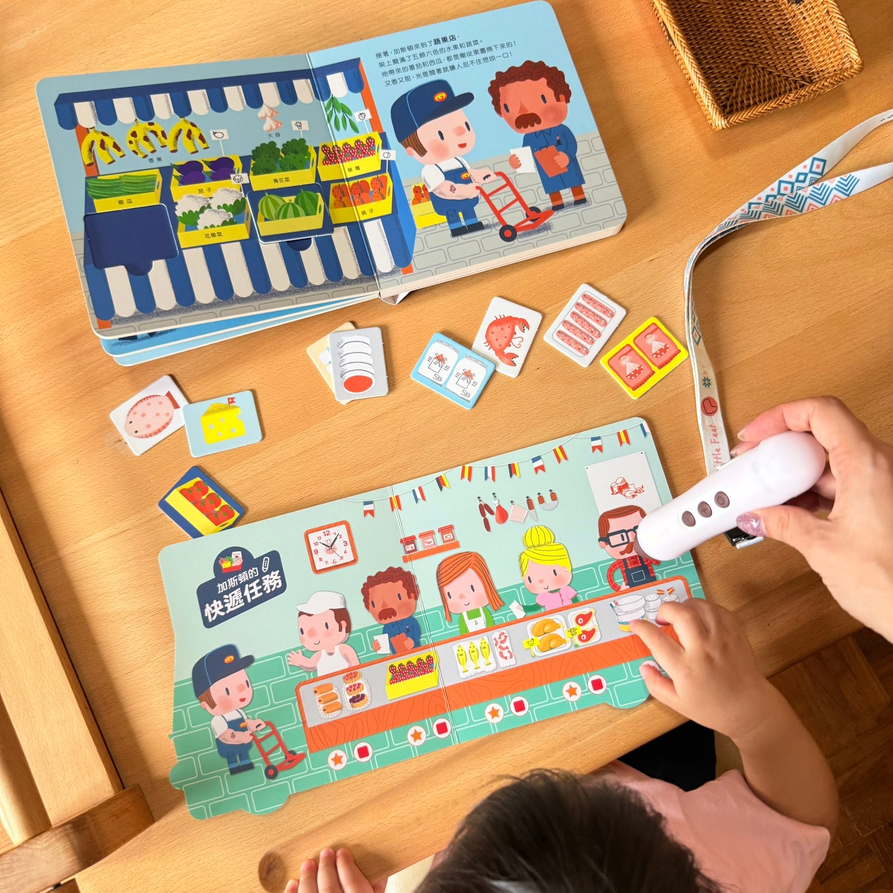 《加斯頓的快遞任務》是一套結合 食材認知、任務挑戰與職業體驗 的互動式遊戲書。