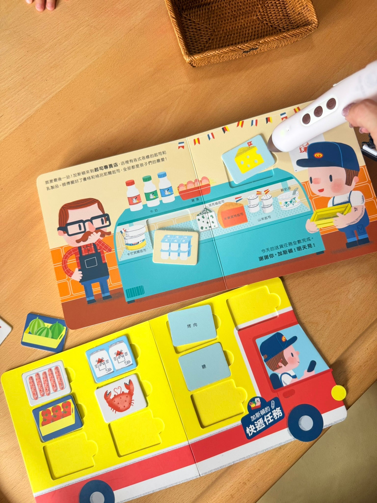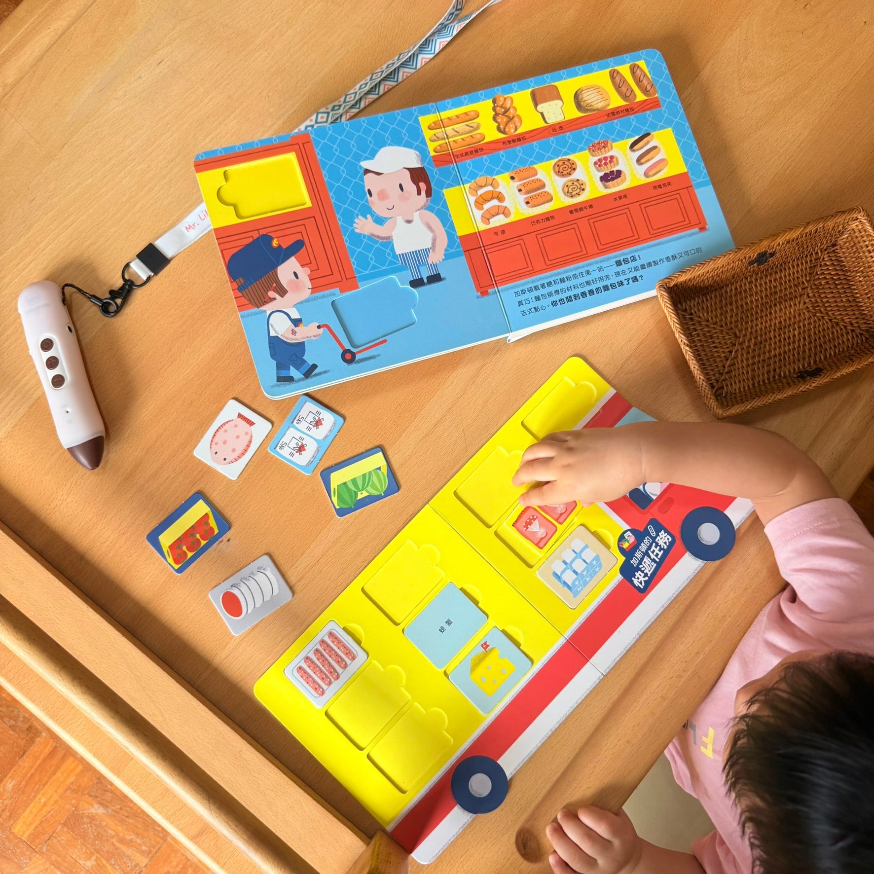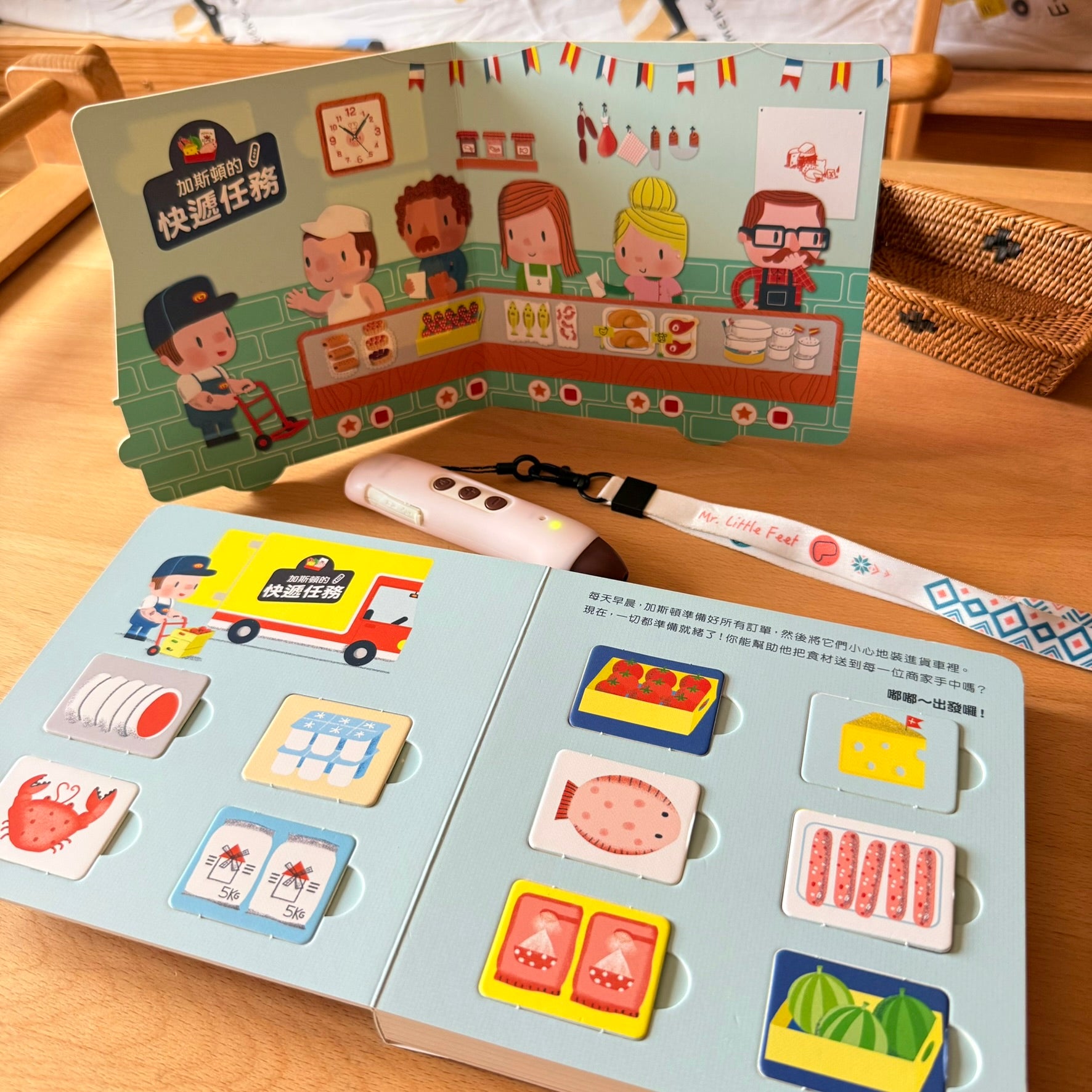 書中搭配小道具與互動卡片,讓遊戲化學習自然發生,讓孩子在探索世界的過程中,邊玩邊學、邊學邊成長。再加上個性鮮明的店家角色與任務挑戰,讓孩子真正化身為「一日小小送貨員」,每一頁都充滿臨場感與樂趣。