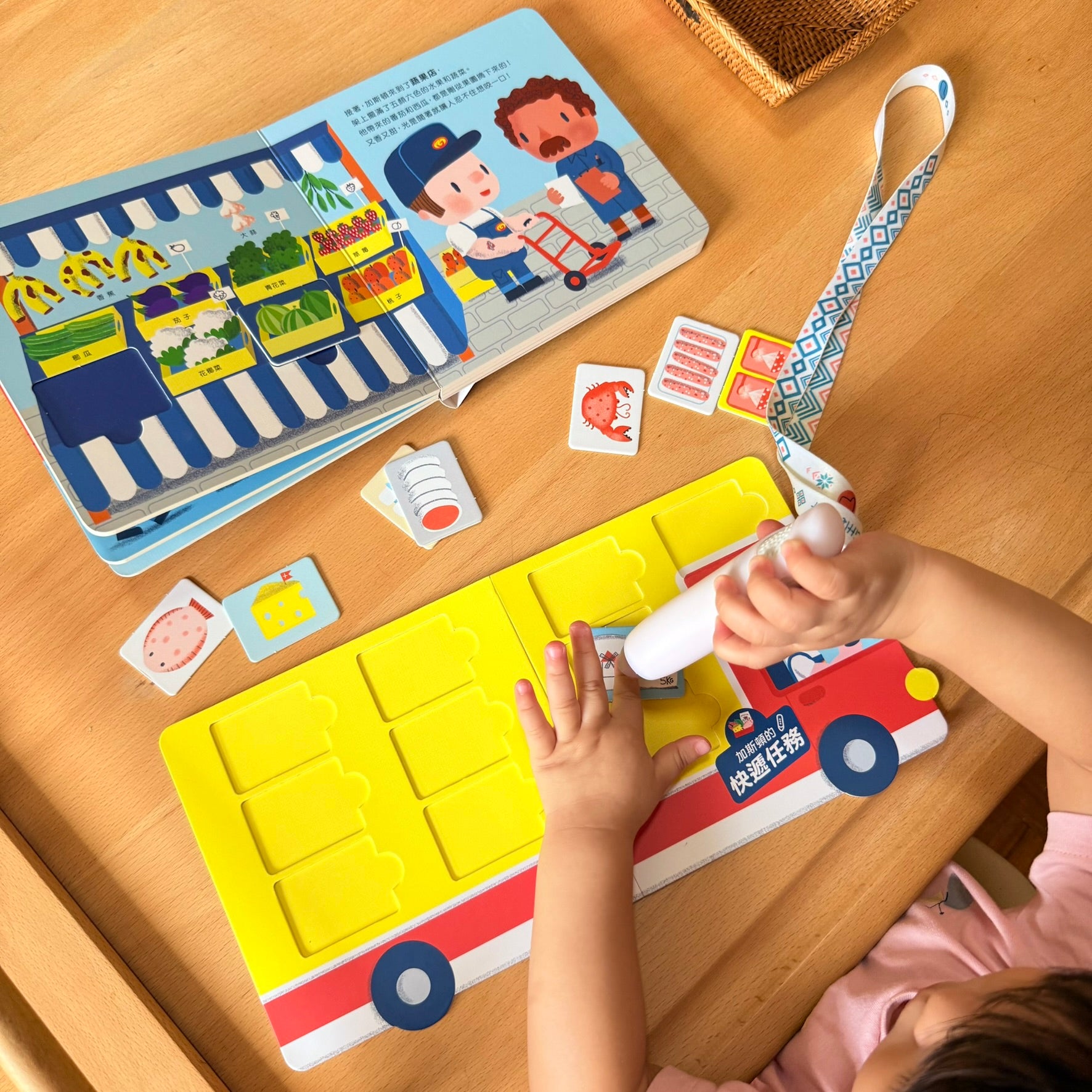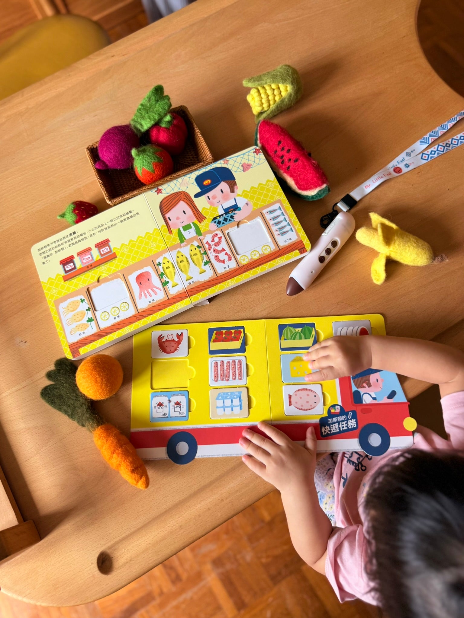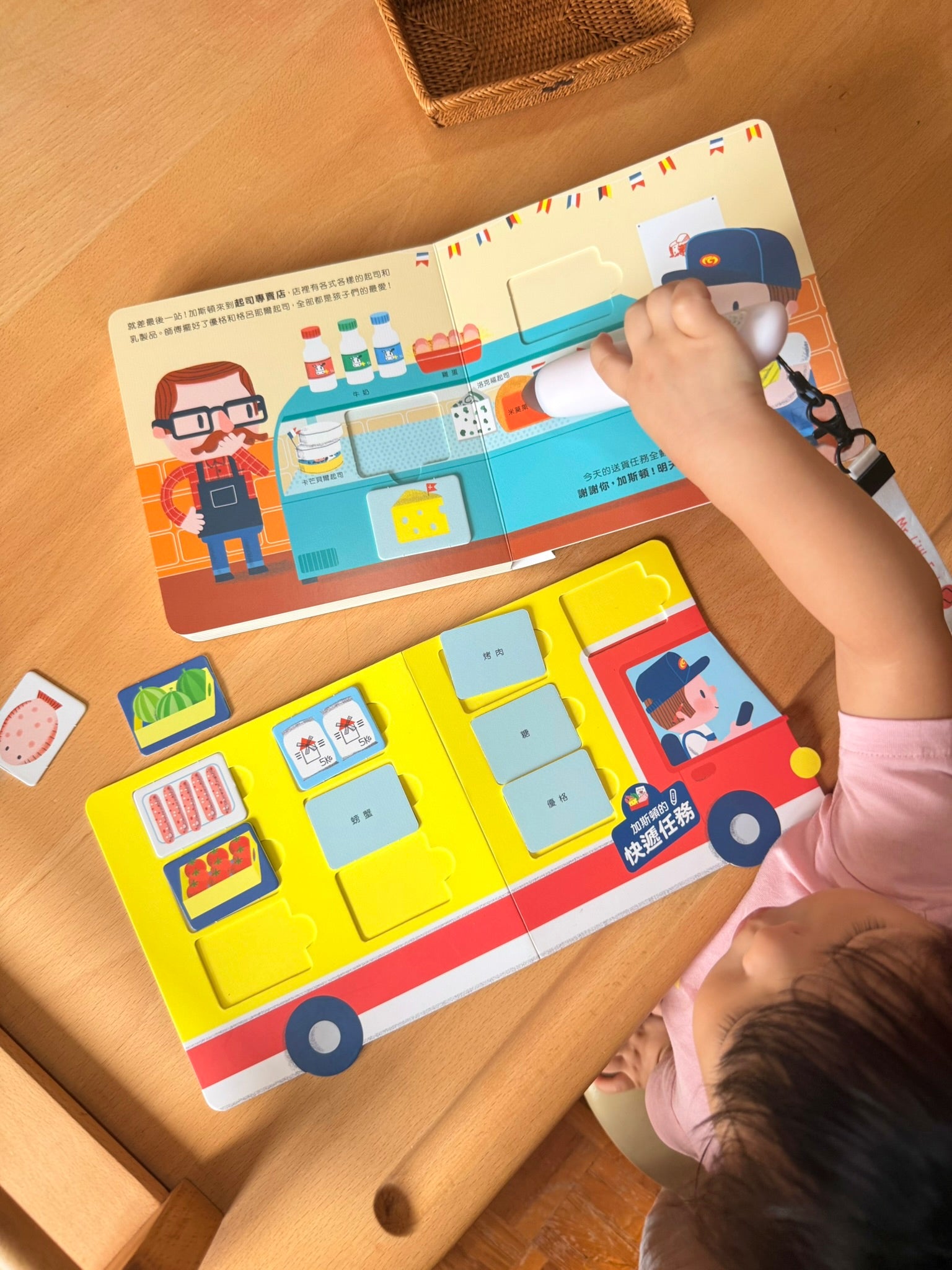 書中搭配小道具與互動卡片,讓遊戲化學習自然發生,讓孩子在探索世界的過程中,邊玩邊學、邊學邊成長。再加上個性鮮明的店家角色與任務挑戰,讓孩子真正化身為「一日小小送貨員」,每一頁都充滿臨場感與樂趣。