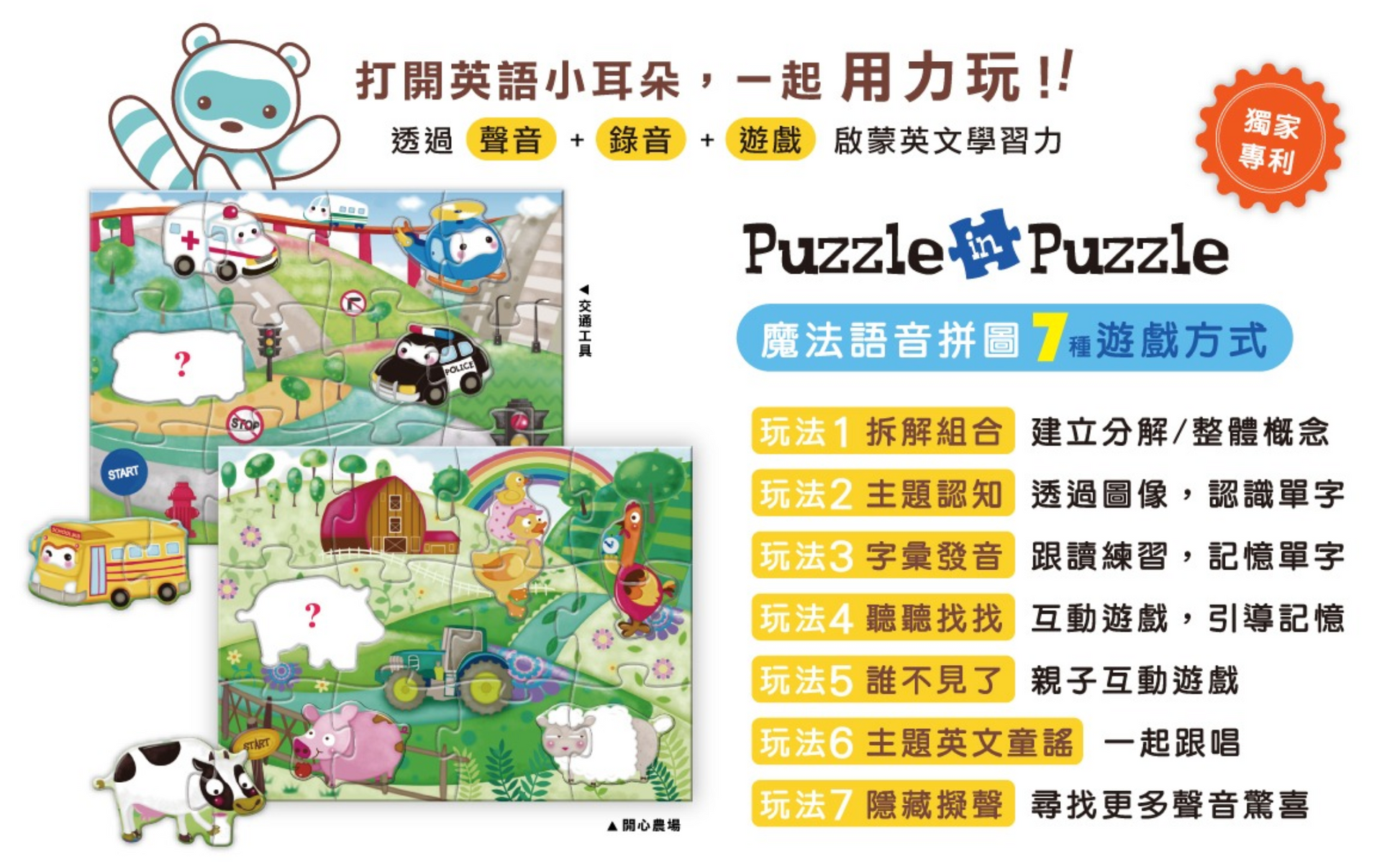 Puzzle in Puzzle 系列 - 交通工具 + 開心農場 點讀語音拼圖