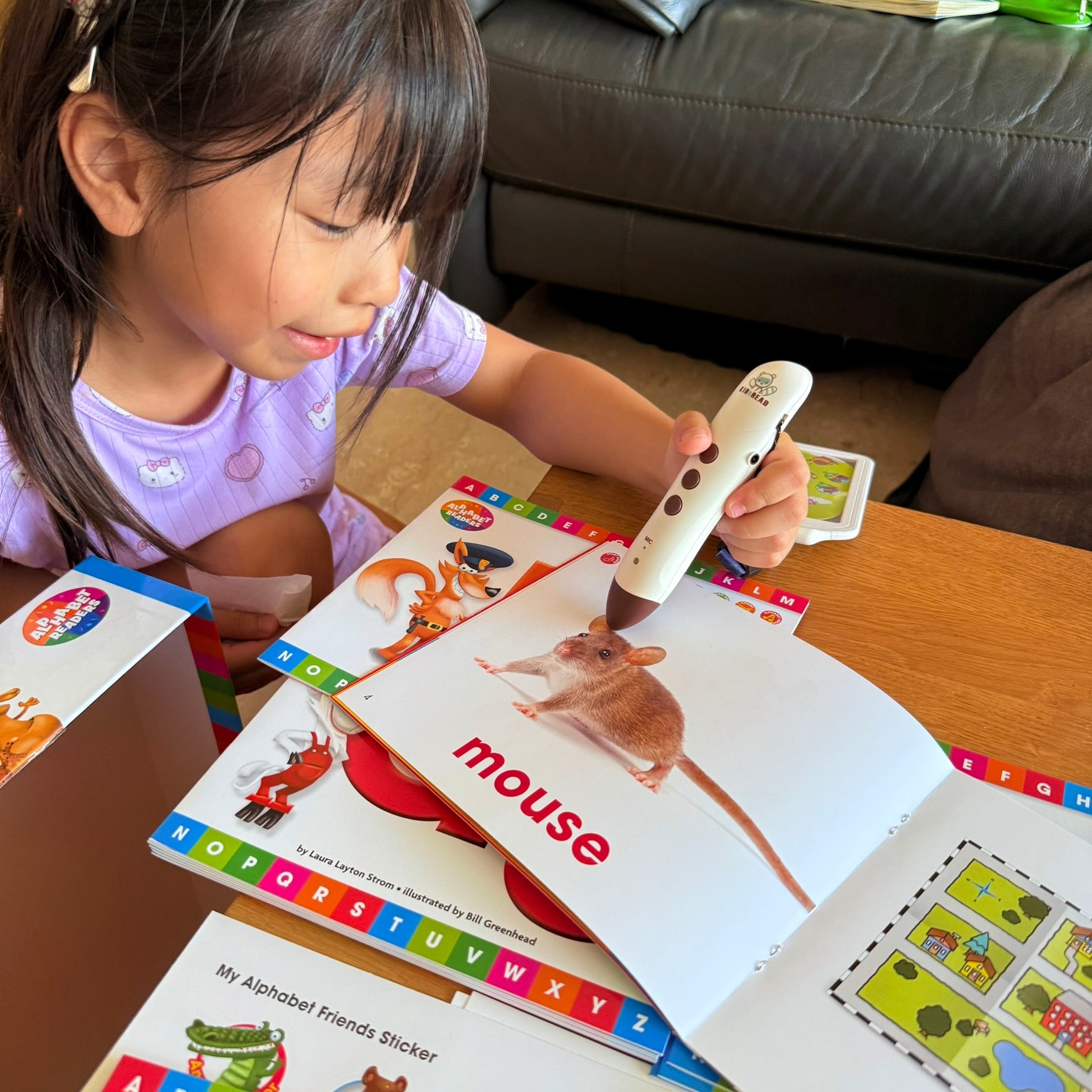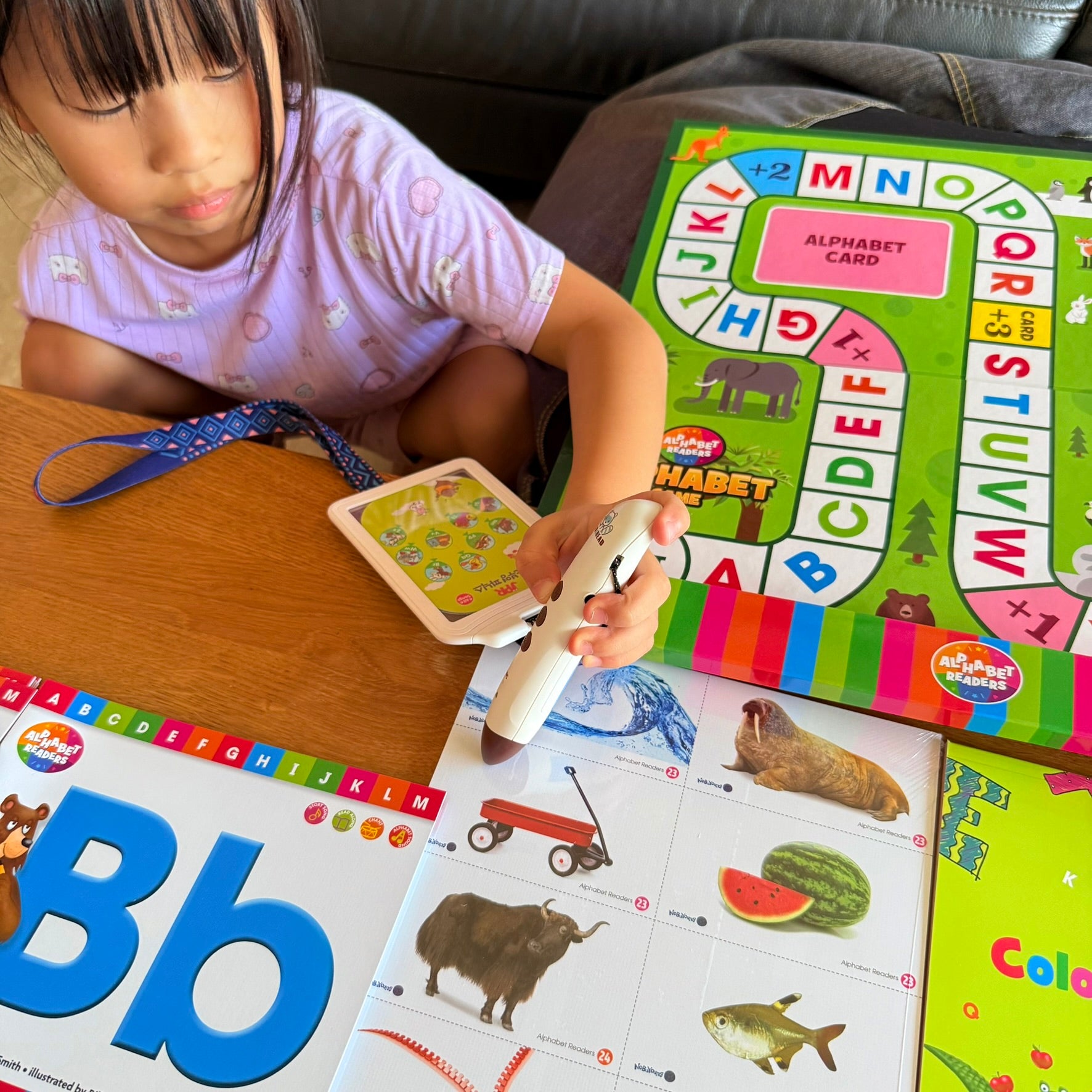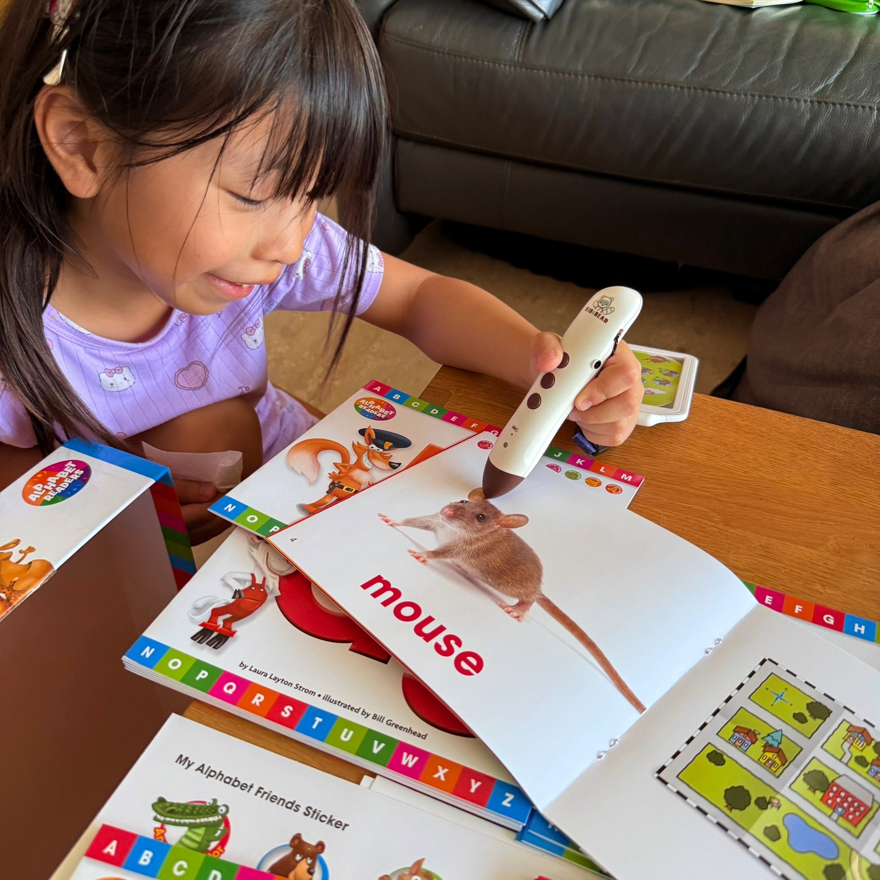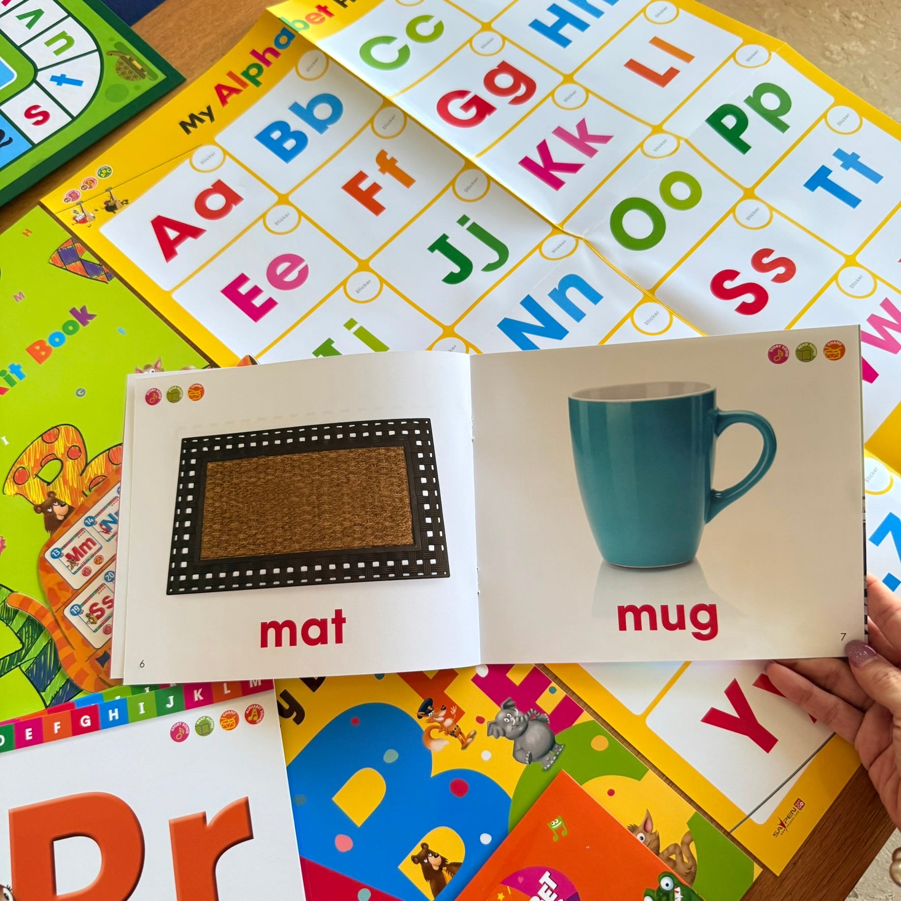 從英文字母讀本故事,到真實圖片點讀字卡英文字母說唱點讀教材, 跳跳唱唱快樂學習新手必備!