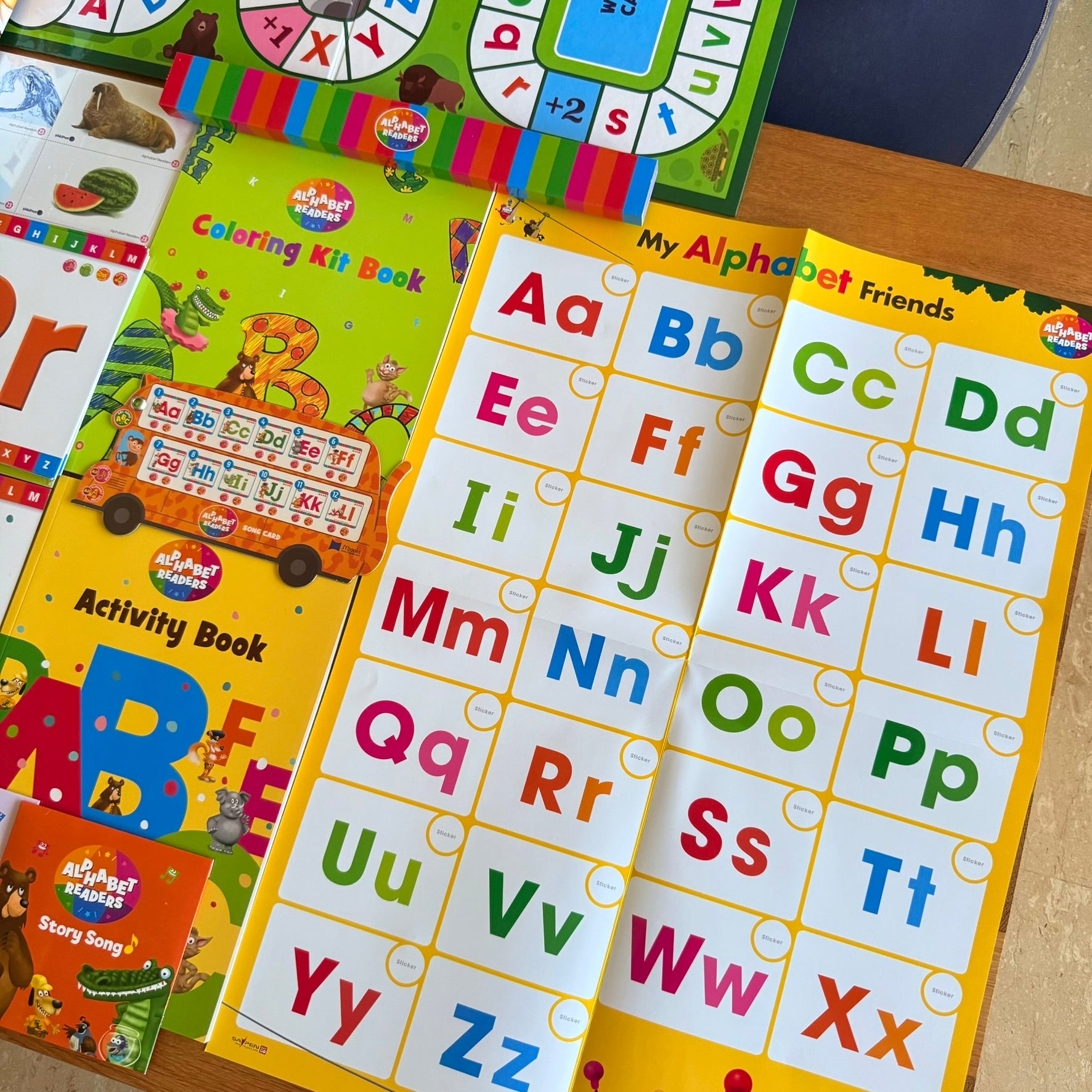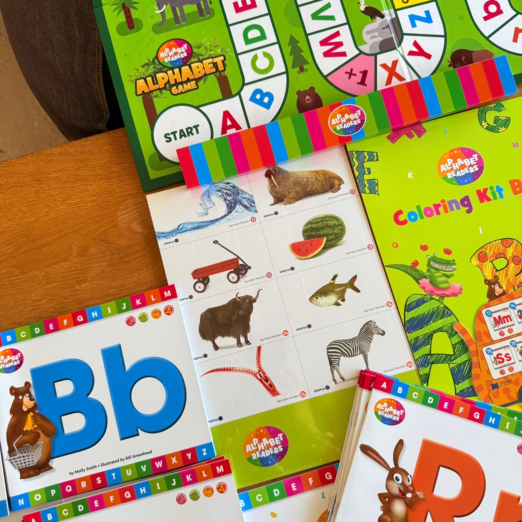 新推出《JY Alphabet Readers 英文字母說唱點讀教材》 配合24本點讀讀本、海報、 活動書及填色書、字母及真實圖片單字點讀卡及字母單字歌,(如有興趣入手「Talking Alphabets 點讀英文字母教具」可以參考另一個字母拼音點讀套組)