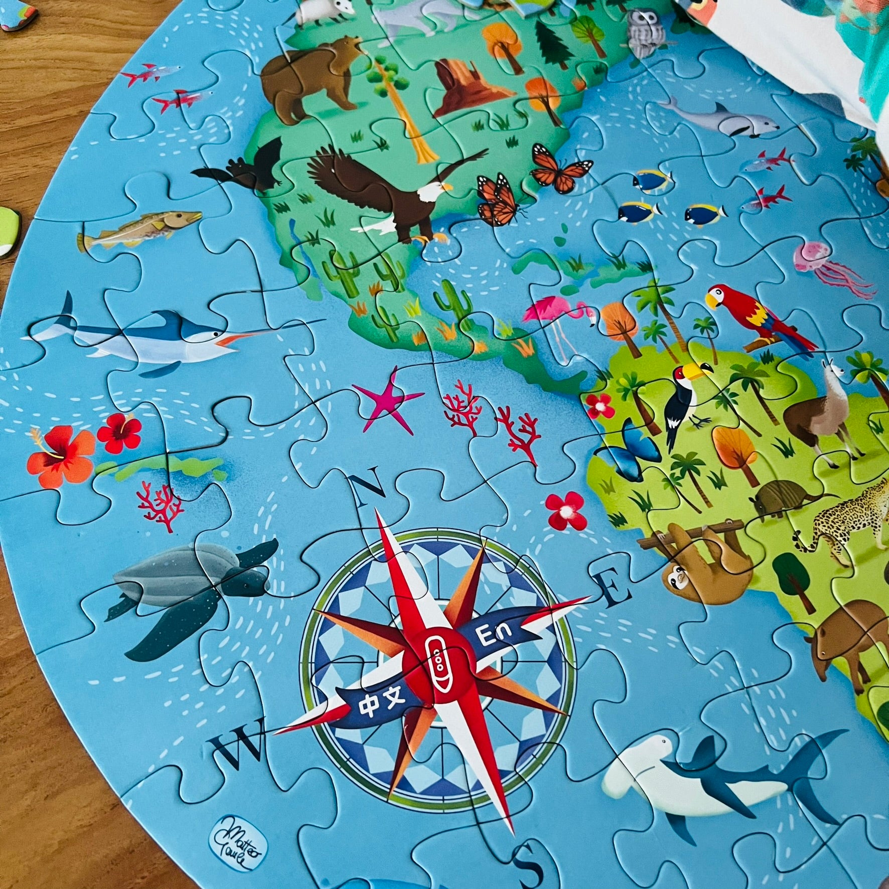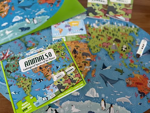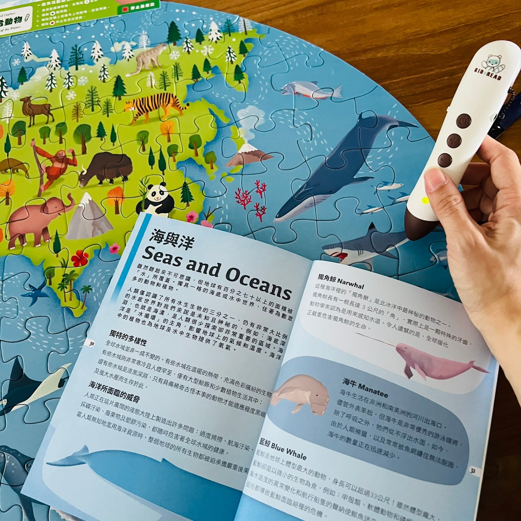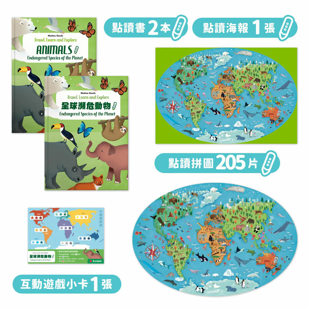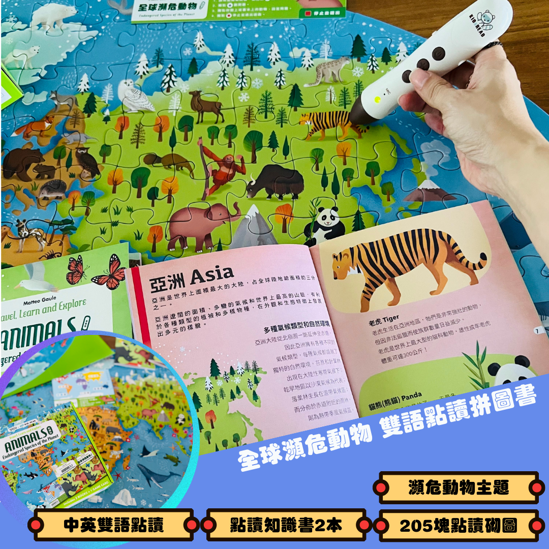 1. 全球瀕危動物雙語點讀拼圖書 (205片) 超大尺寸,認識各大洲生態地理及瀕危動物知識
