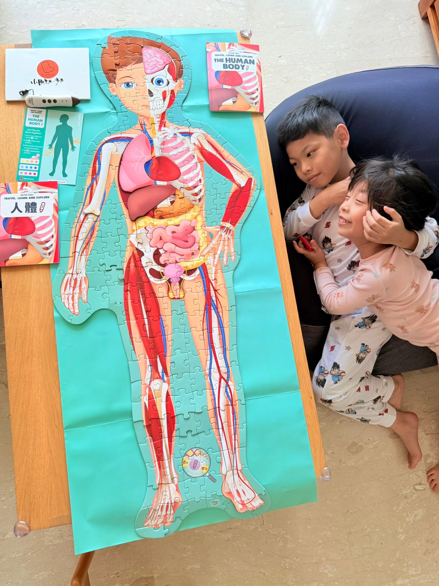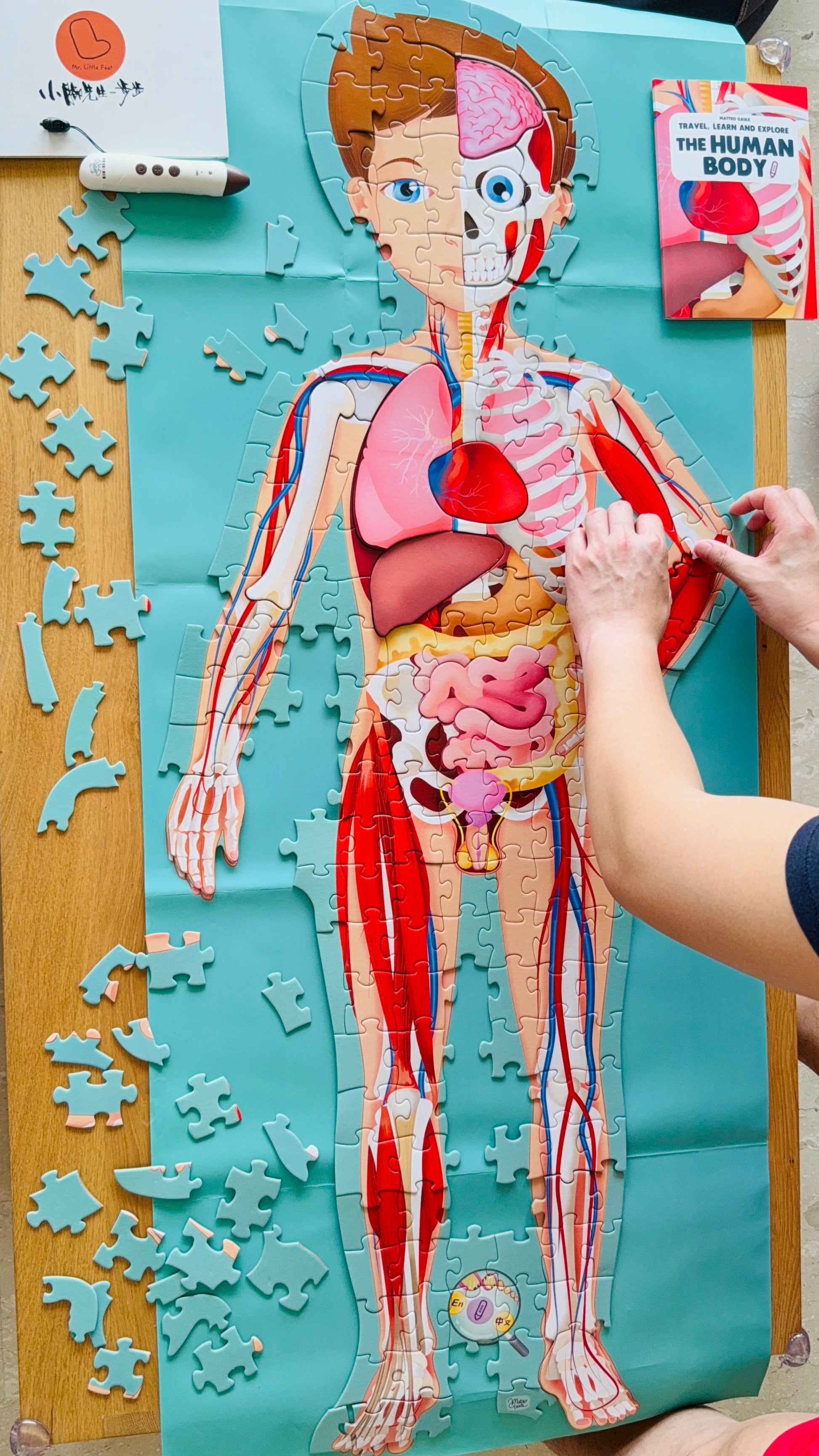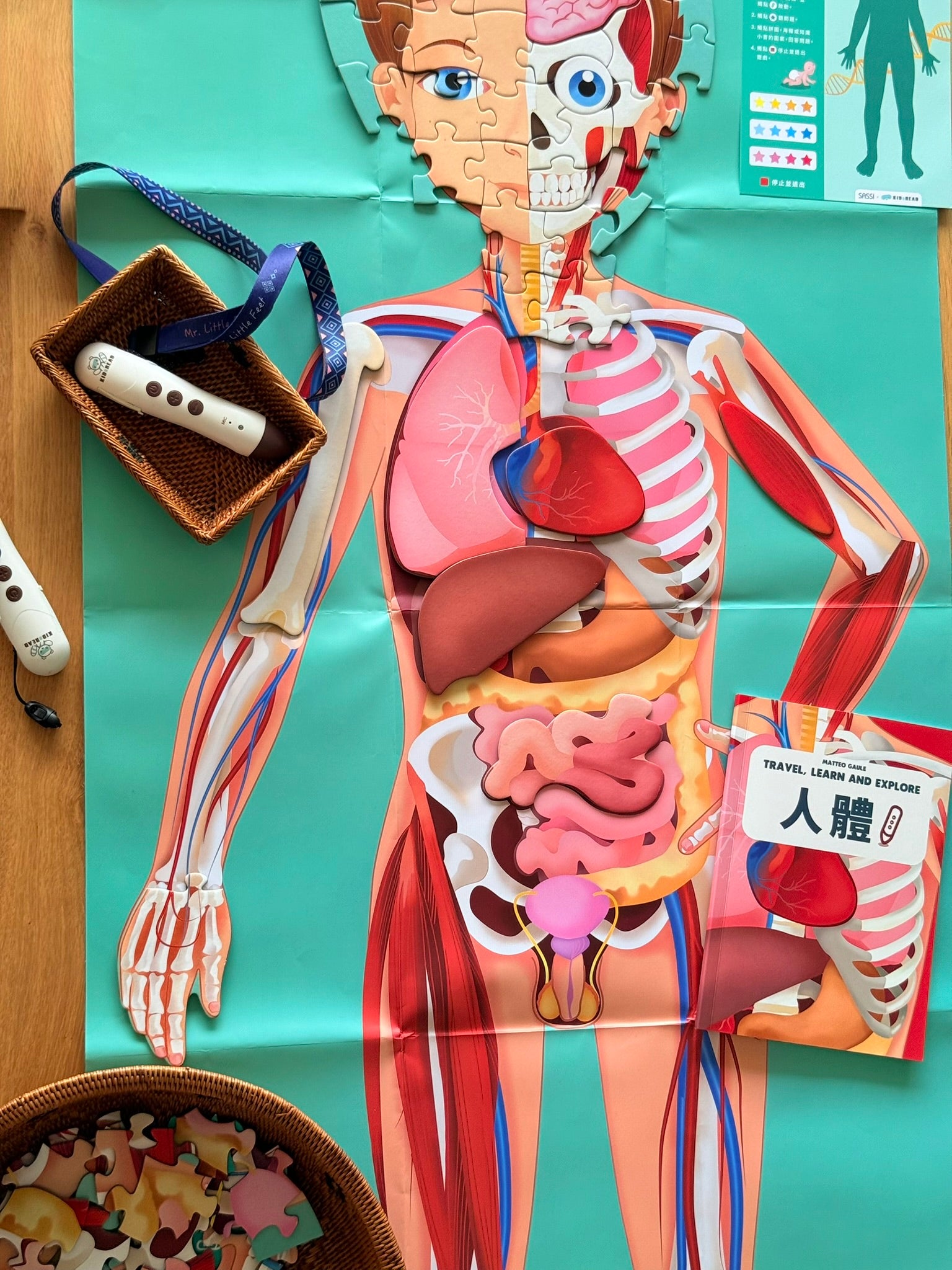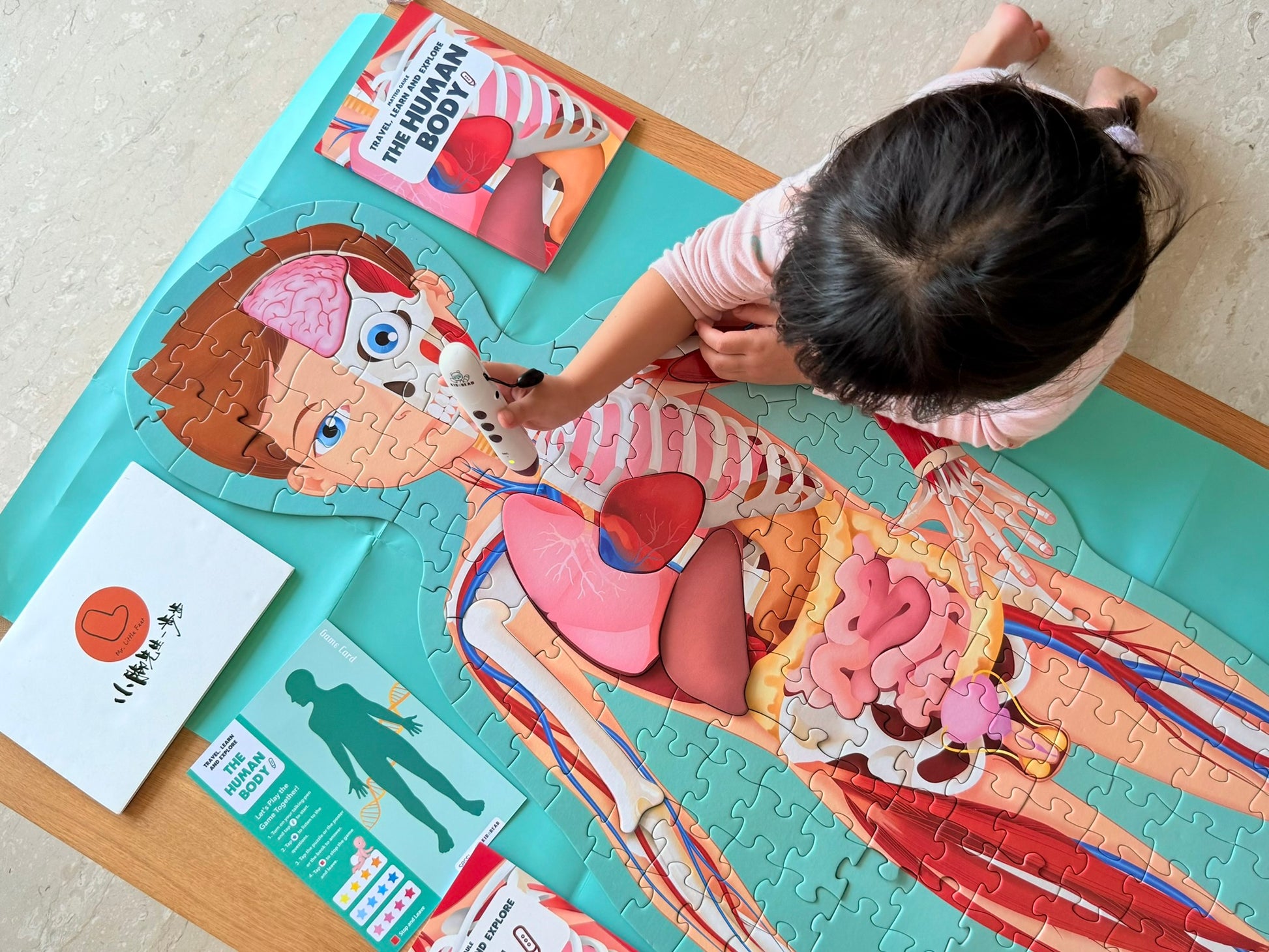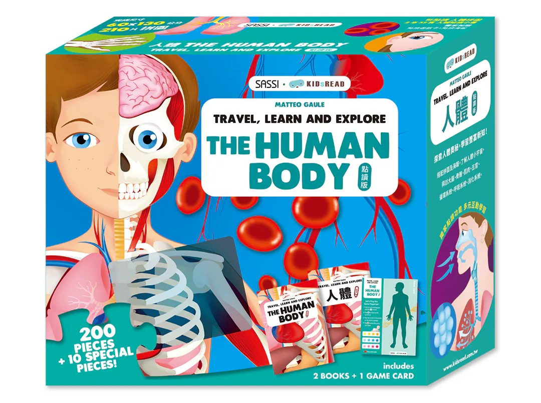 2. The Human Body 人體大解密,雙語點讀拼圖書 (210片,其中10片模擬一位身高1.3米孩子身體內部器官的實質尺寸)中英對照,人體生物有趣發現
