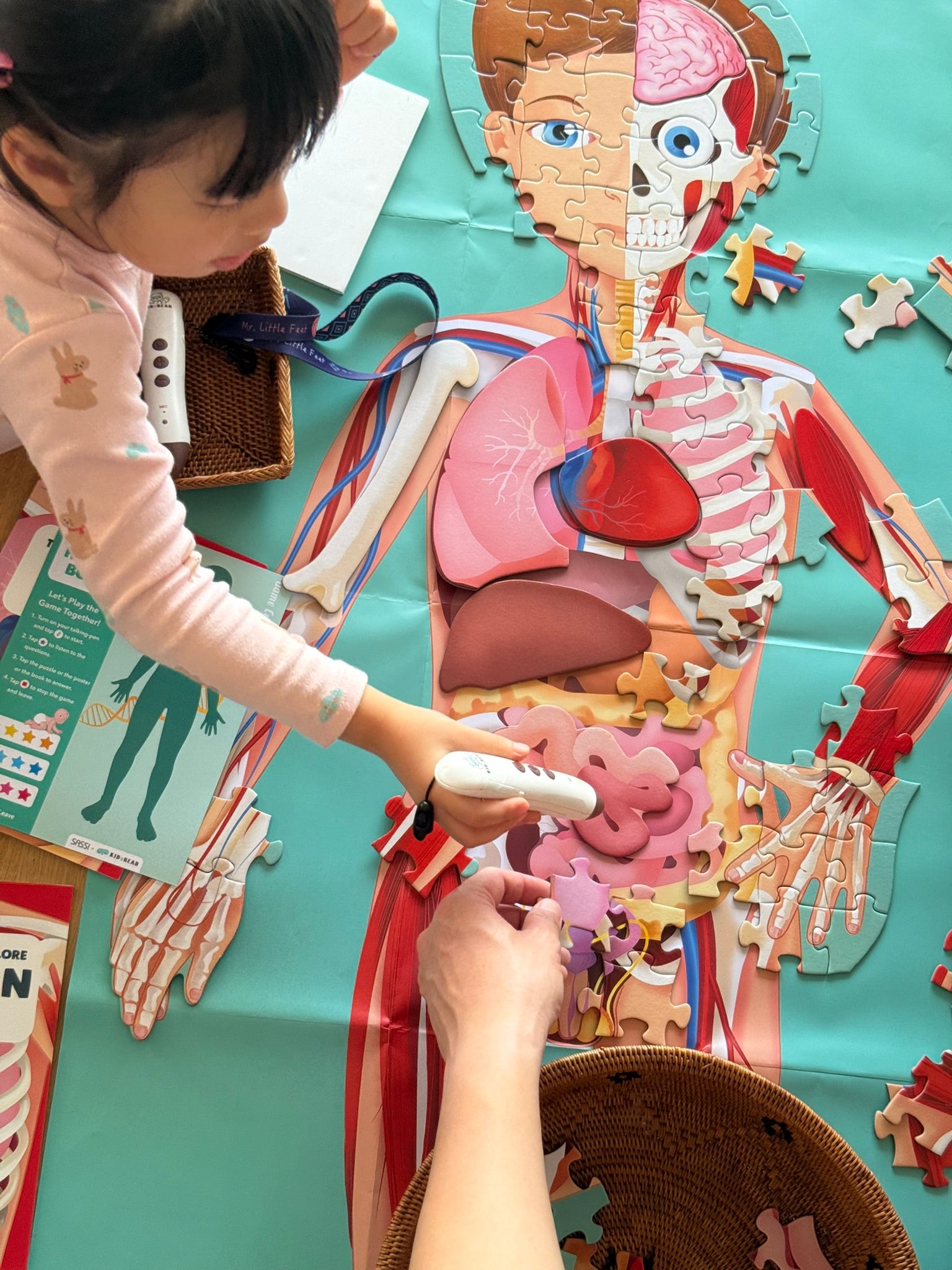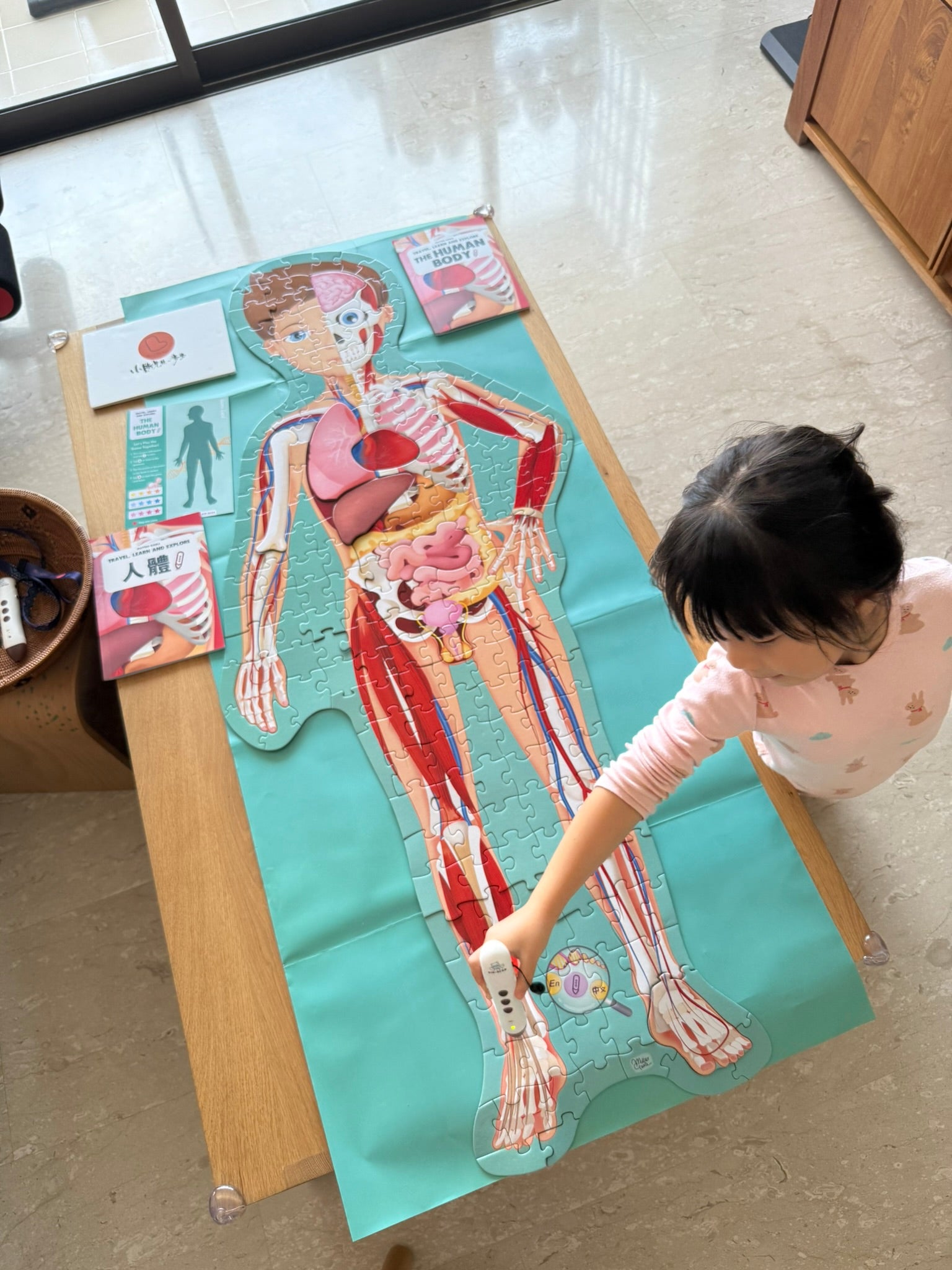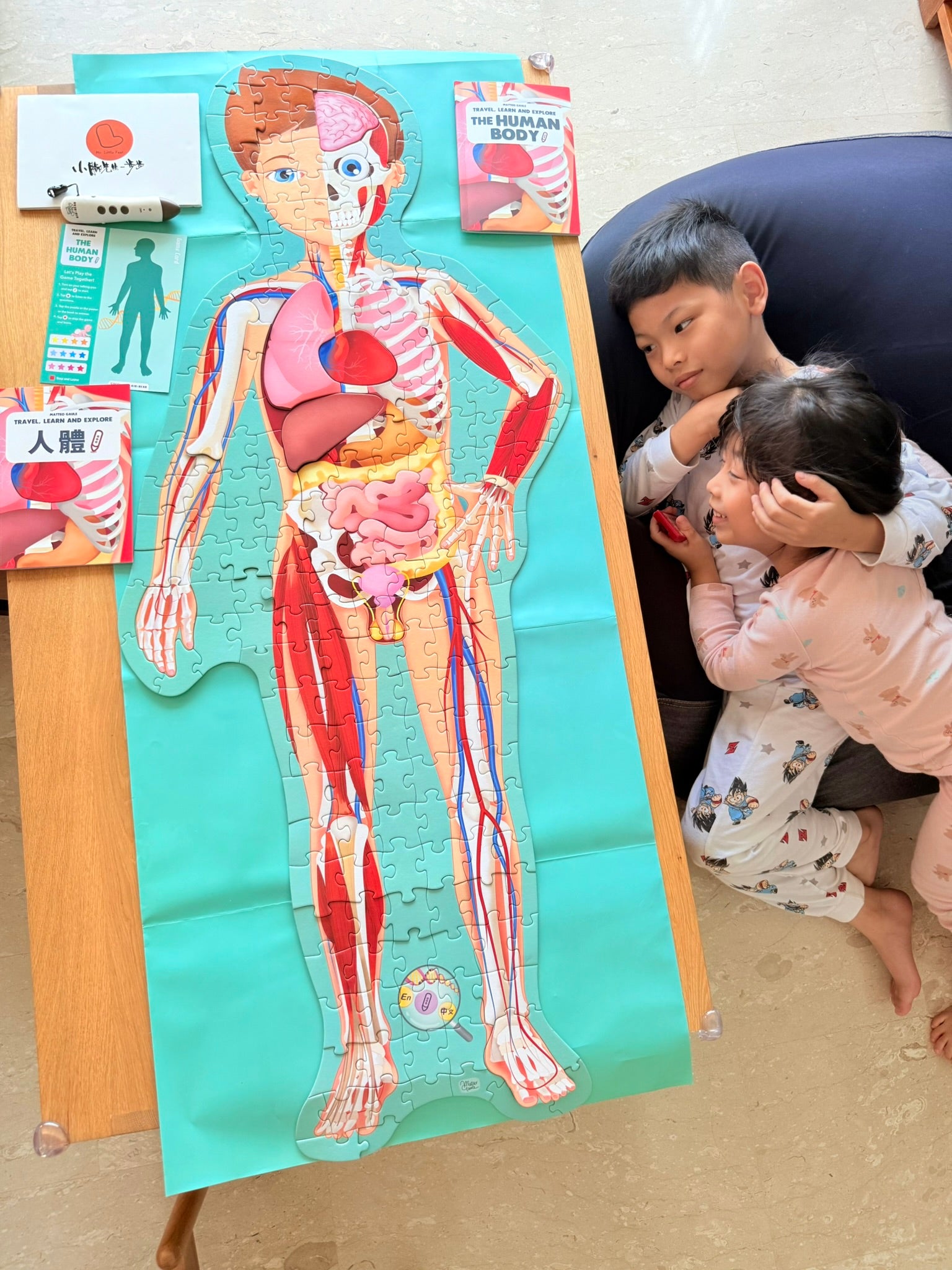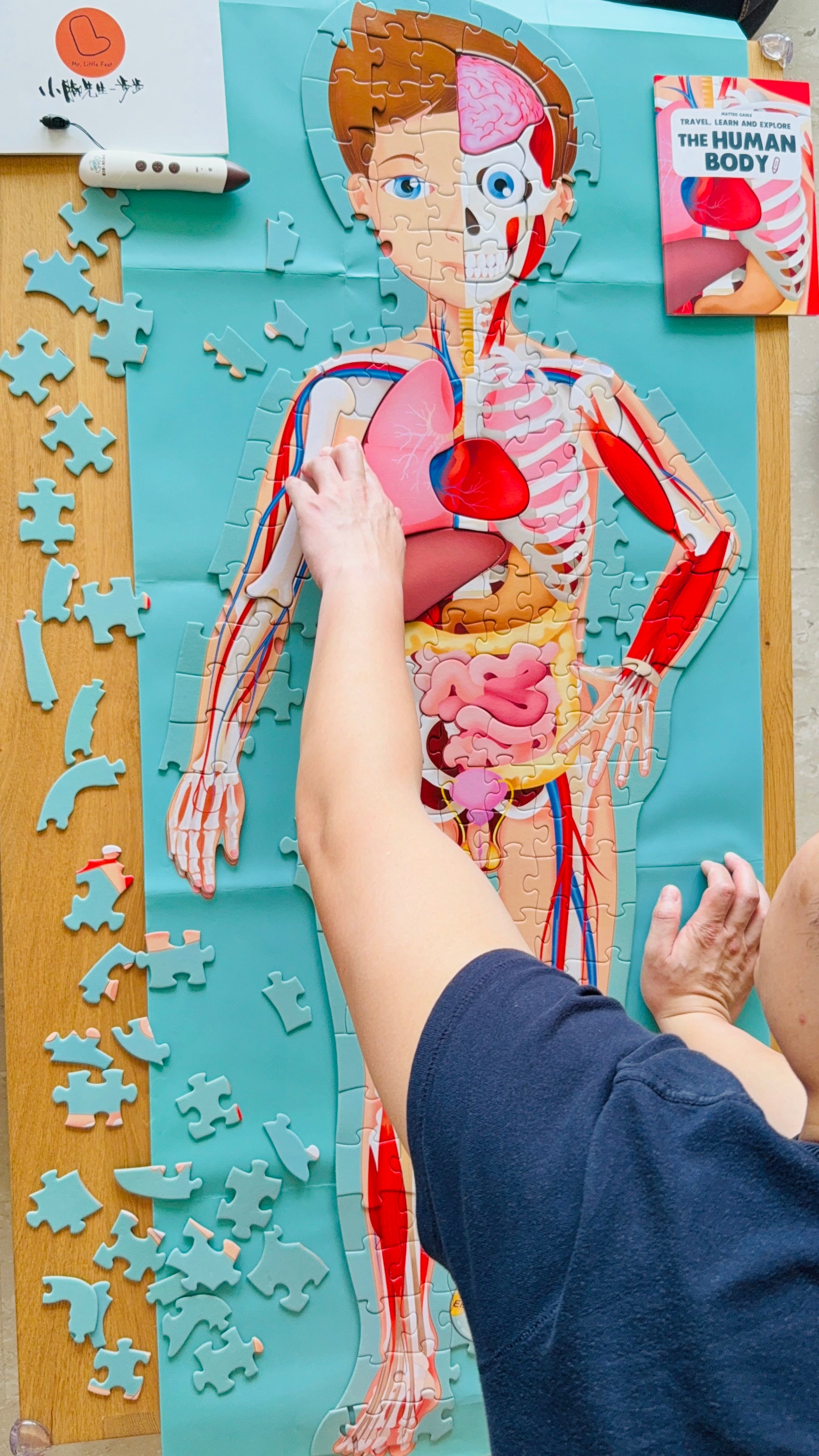 2. The Human Body 人體大解密,雙語點讀拼圖書 (210片,其中10片模擬一位身高1.3米孩子身體內部器官的實質尺寸)中英對照,人體生物有趣發現