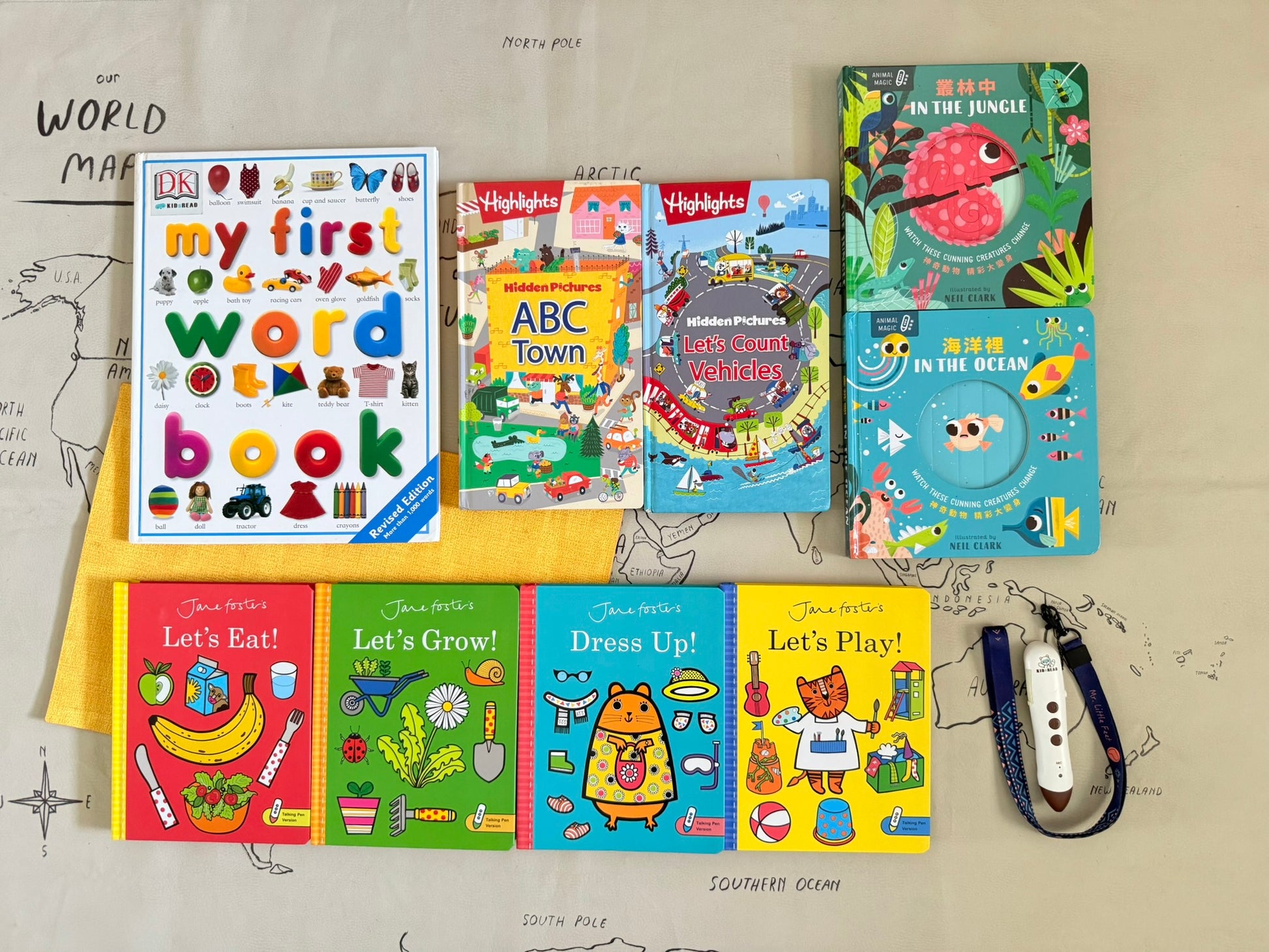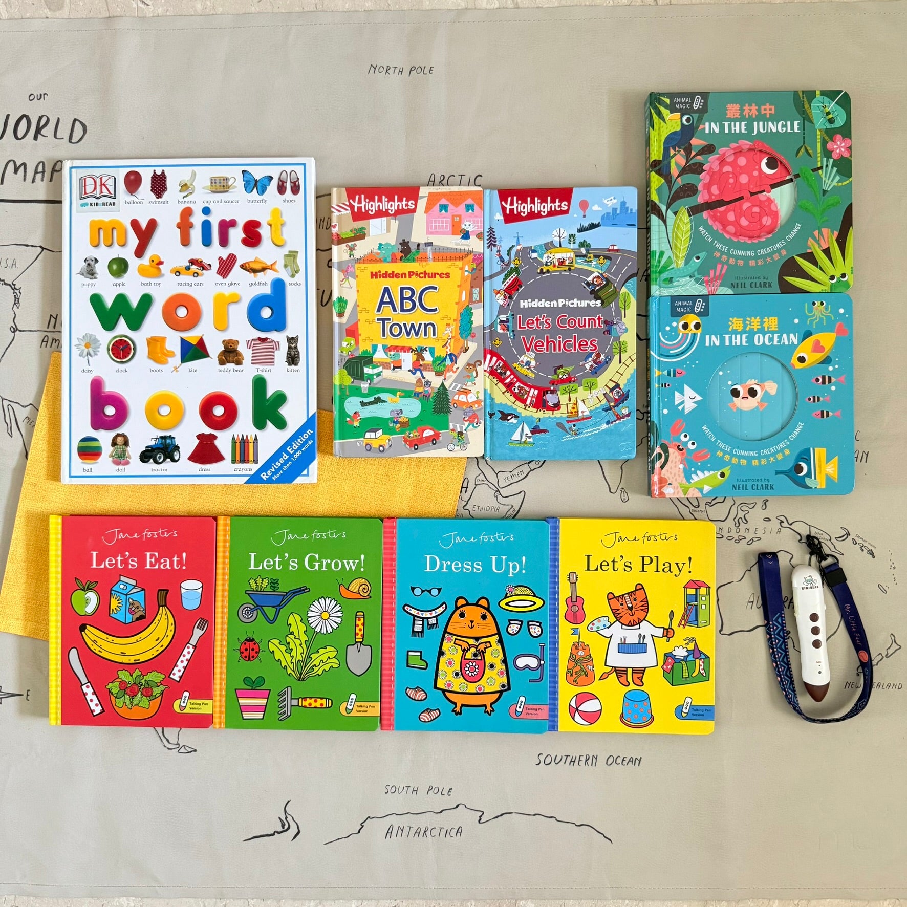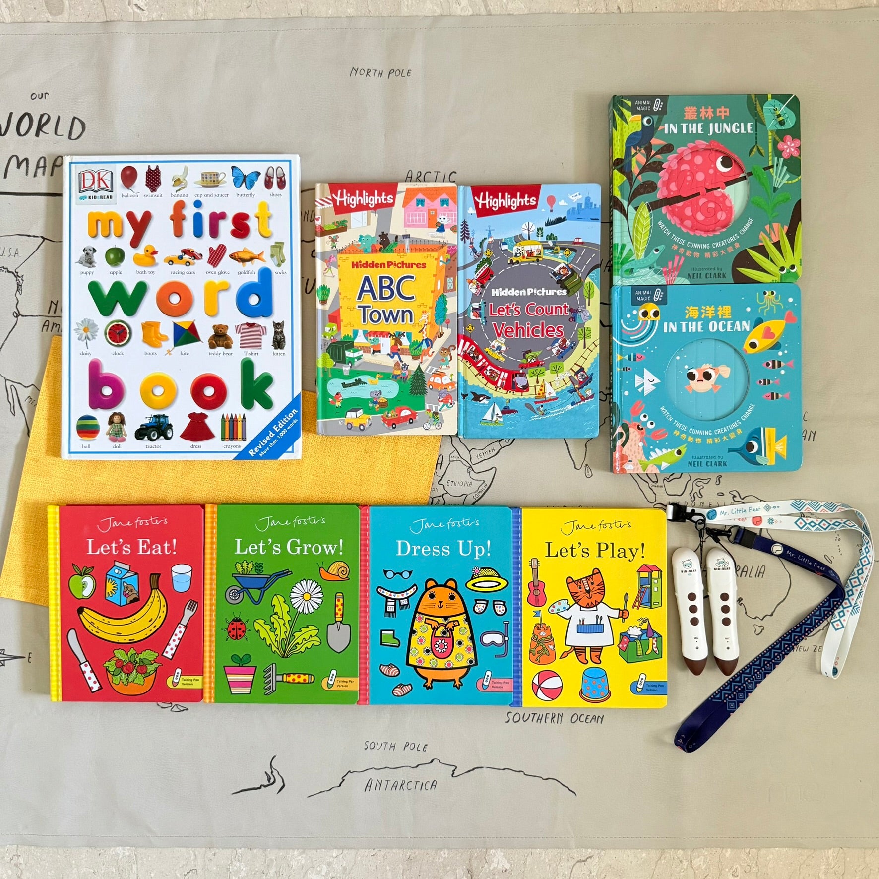 ★ Highlights 英文找找點讀書遊戲書 ABC Town + Let's Count Vehicles,可點擊👉🏻連結參考。