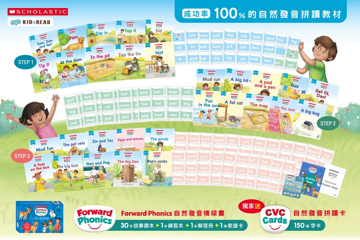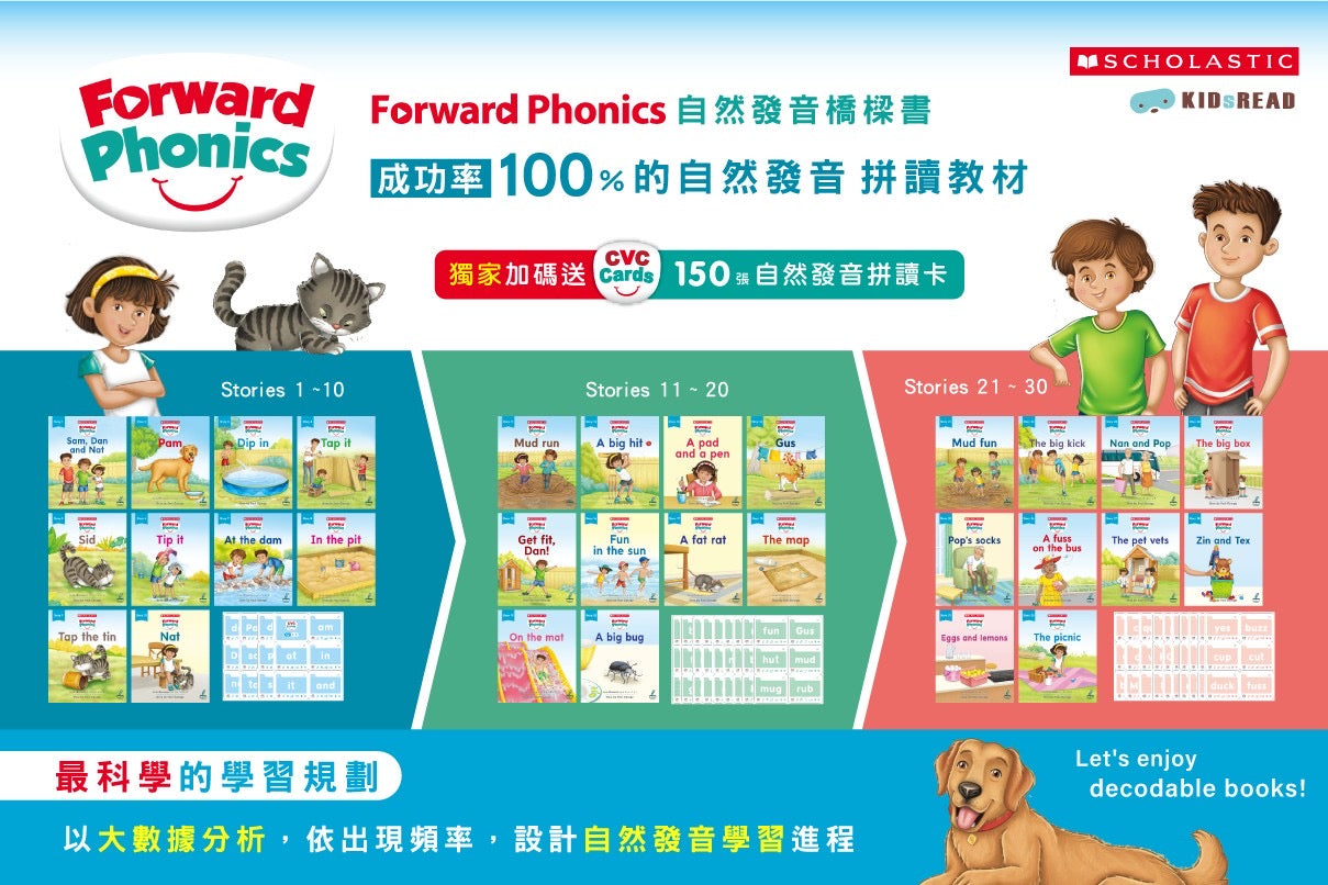 Scholastic Forward Phonics 自然發音橋樑書(贈 CVC Cards 自然發音拼讀卡)