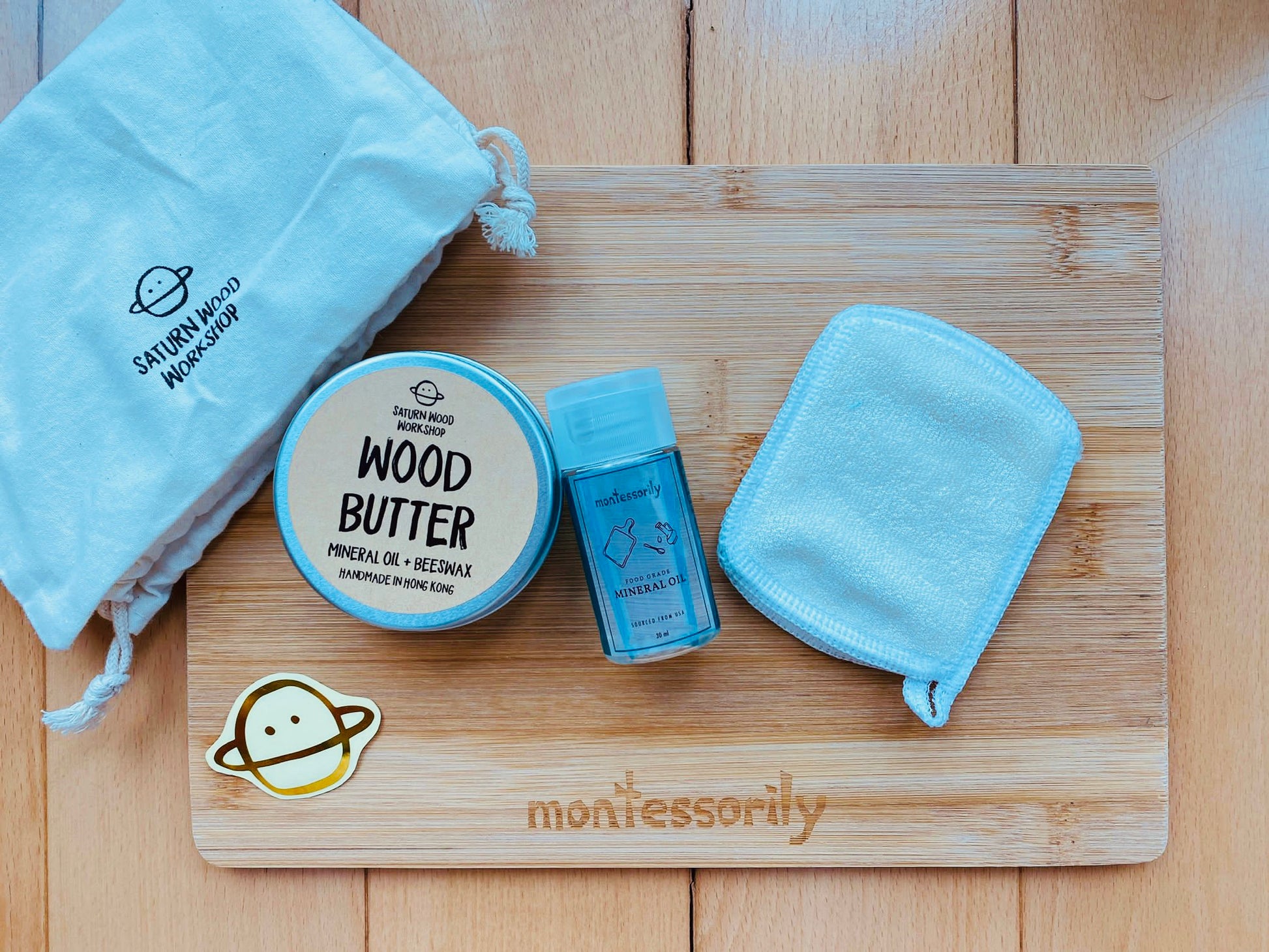 (以上為示意圖,護理組包含的木蠟油是小容器包裝讓孩子易於操作)